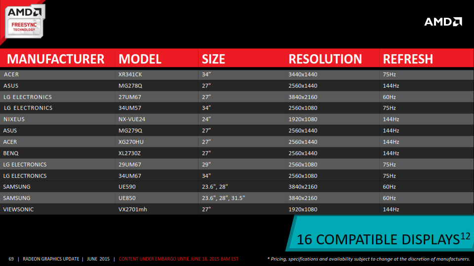 AMD FreeSync™ Technology อีกหนึ่งฟีเจอร์ของทาง AMD ที่ตอนนี้บรรดาจอมอนิเตอร์รองรับการทำงานมากถึง 16รุ่นด้วยกันครับ ระบบ AMD FreeSync™ Technology ก็คือเป็นการขจัดปัญหาภาพแตกหรือที่เราเรียกกันว่าซัตเตอร์ริ่งนั่นเองครับ โดยจอมอนิเตอร์หลากหลายยี่ห้อก็ทยอยกันซัพพอตอย่างมากมายแล้วครับในปัจจุบัน