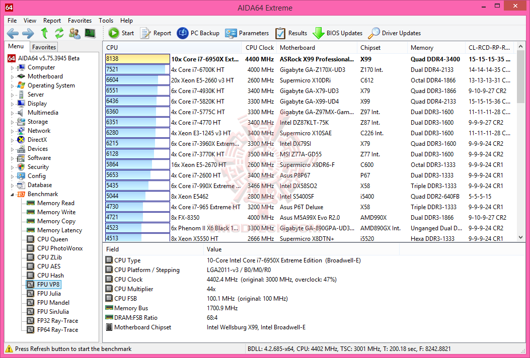 ASRock Fatal1ty X99 Professional Gaming i7 Motherboard Review : AIDA64 Extreme Edition Results (6/8)
