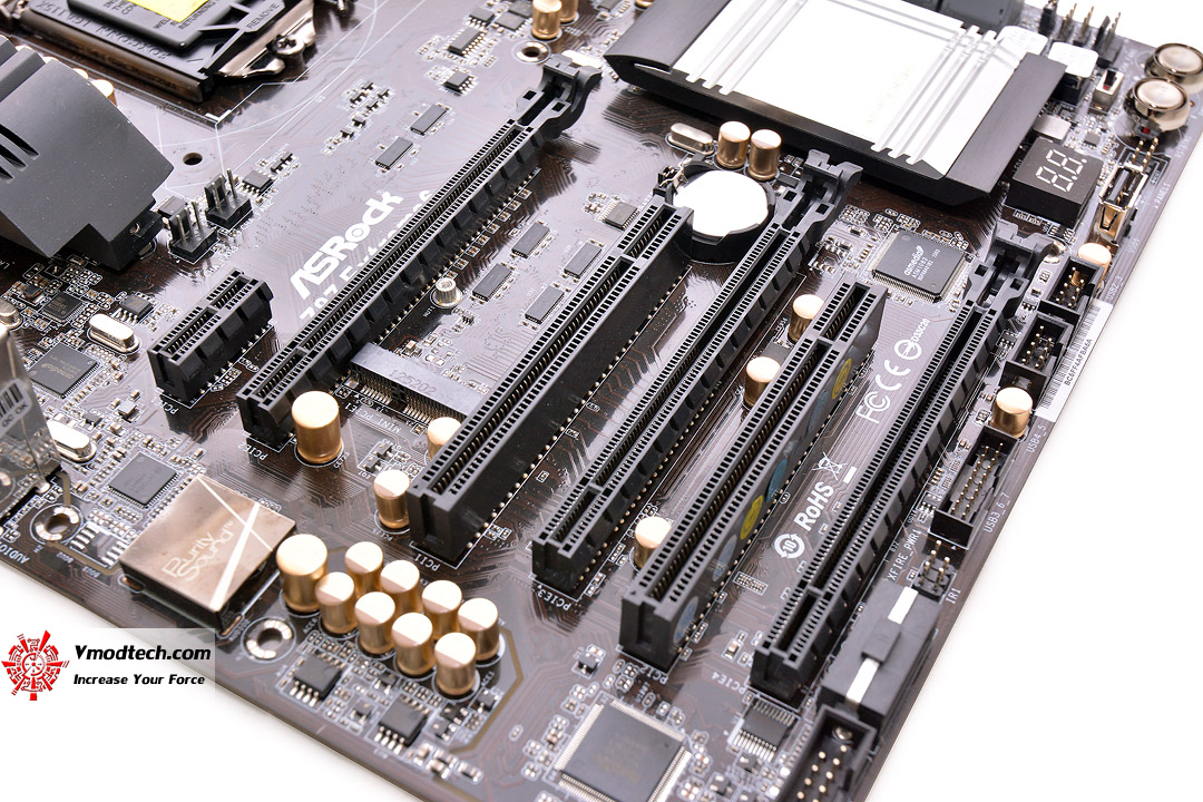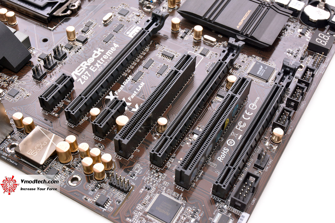 ...PCI-E 3.0/2.0 X16 Slot จะมี 3 ช่องทาง รองรับ 2 Way SLI & 3 Way CrossfireX ตามด้วย Mini PCI-E 1 ช่องทาง PCI-E 2.0 X1 Slotอีก 1 ช่องทาง และปิดท้ายด้วย PCI 32 Bit อีก 2 ช่องทางครับ