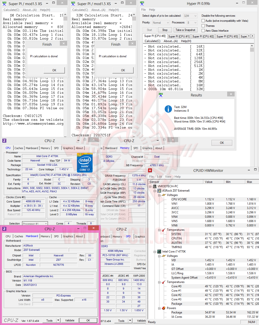 SuperPI 1M 1Thread, 32M 1Thread & 32M 8Threads