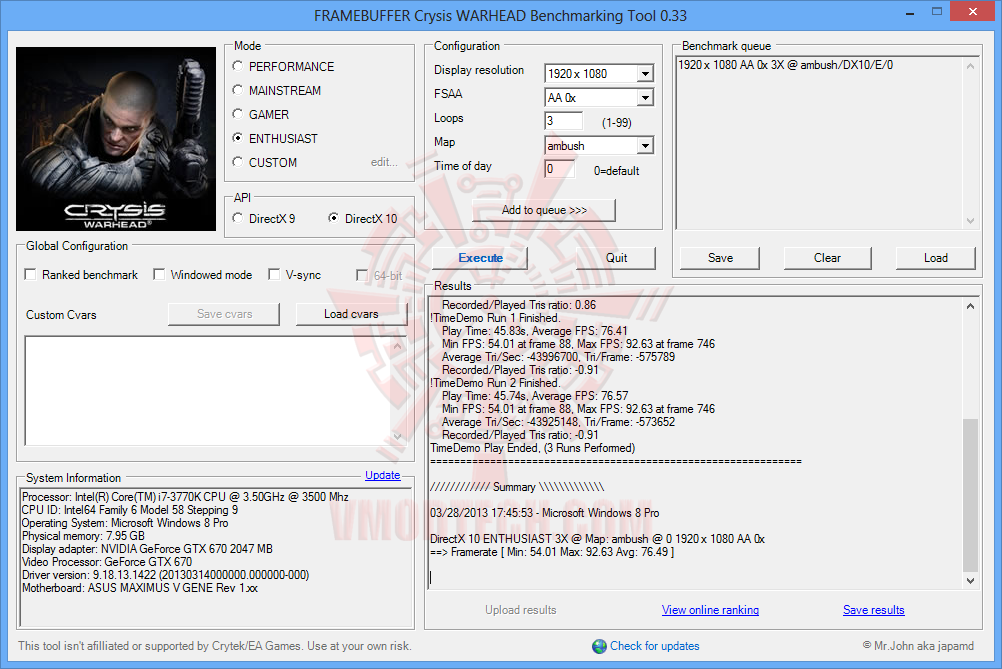 ASUS GeForce GTX 670 DC Mini Review : Crysis Warhead DX10 (10/23)