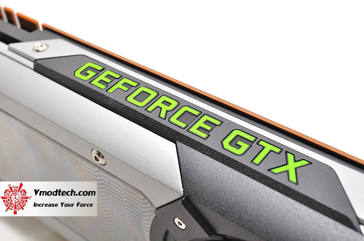 ตรงสันของกราฟฟิคการ์ดจะมีตราคำว่า GEFORCE GTX ที่ส่องแสงสีเขียวงดงามเช่นเดียวกีนกับรุ่นก่อนหน้าอย่าง NVIDIA GeForce GTX 690 ครับ