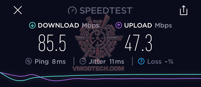 ลองทดสอบความเร็วอินเตอร์เนตในห้องก็จะได้ความเร็วดังรูปครับที่ 85.5/47 download/upload ใกล้หน่อยเลยแรง