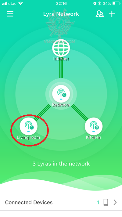 ตัว app จะพบกับ lyra ตัวแรกที่เราเชื่อมต่อเอาไว้ครับ และ lyra ก็พร้อมที่จะเริ่มใช้งานแล้วเพราะเราเสียบสายแลนที่มีอินเตอร์เนตเข้ามาด้วย หลังจากนั้นให้ทำการกดปุ่ม pair ที่ตัว lyra ตัวนี้ และตัวที่สอง เพื่อทำการเชื่อมเครือข่าย หลังจากนั้นก็ pair ตัวแรกกับตัวที่สามต่อได้เลย ซึ่ง lyra ตัวที่สองและสามนี้ให้วางกระจายตามจุดต่างๆในพื้นที่ที่ต้องการให้อินเตอร์เนตครอบคลุมครับ ซึ่งในระหว่างที่ทำการ pair นี้ ตัว app ก็จะมีข้อความแนะนำตลอดเวลา ไม่ยากเลย
