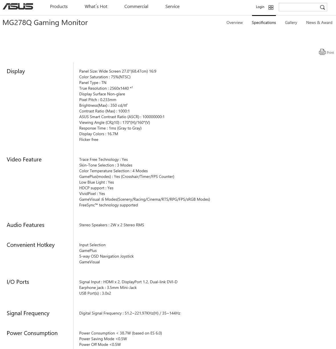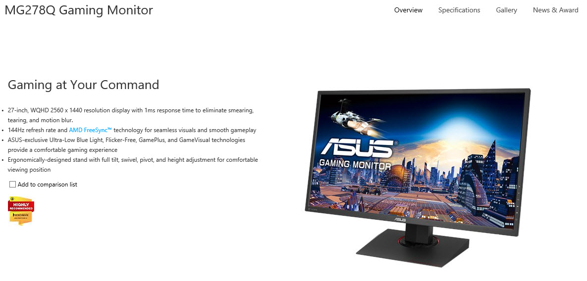 ASUS MG278Q 27-inch WQHD GAMING Monitor Review : Page 1 (1/5)