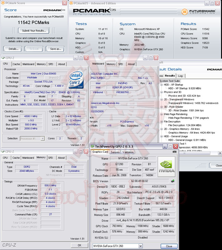 มาถึงในช่วงของการทดสอบประสิทธิภาพจากโปรแกรมเบนซ์มาร์คกันบ้างครับ ครั้งนี้เปลี่ยนมาใช้ CPU Intel E8400 ทดสอบบนระบบระบายความร้อนด้วยอากาศ ห้องไม่ติดเครื่องปรับอากาศเช่นเคยนะครับ อุณหภูมิโดยรอบเฉลี่ย31-32องศาเซลเซียส กราฟฟิกการ์ดเลือกใช้ ASUS ENGTX260 Matrix ที่เคยทดสอบให้ได้ชมกันมาแล้ว หน้าตาซิสเตมที่ใช้ดังรูปด้านล่างเลยครับ