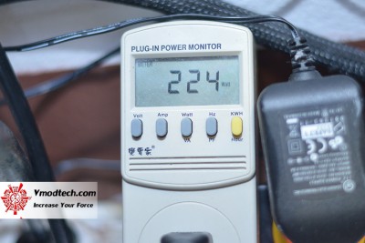 สำหรับ Full Load นั้น กำลังไฟที่กินจากเต้ารับก็ประมาณ 407 วัตต์ และในสถานะ Idle นั้นก็กินไฟจากเต้ารับอยู่ 224 วัตต์ครับ