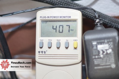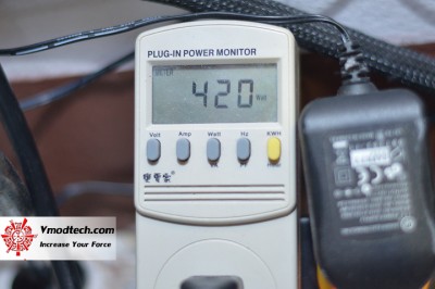 เมื่อทำการโอเวอร์คล๊อกไปแล้ว อัตราการเรียกใช้ไฟจากเต้ารับนั้นก็เพิ่มขึ้นเป็น 420 วัตต์ครับ