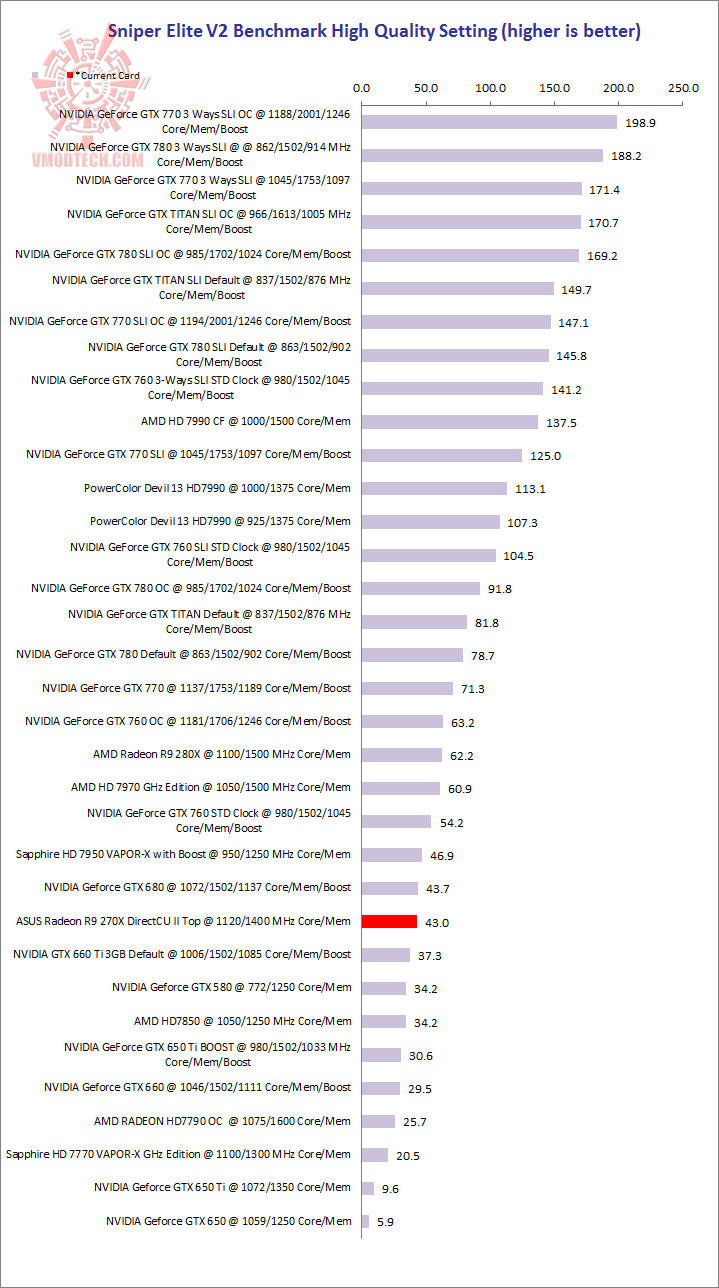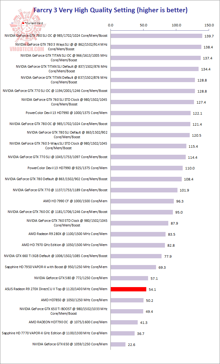 ความเร็วมาตรฐานของ GASUS RADEON R9 270X DirectCU II TOP นั้นคือ 1120/1400 MHz Core/Mem