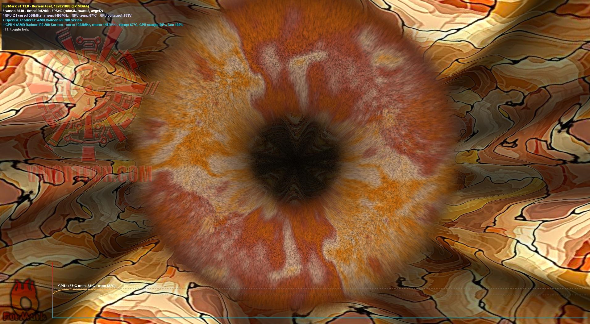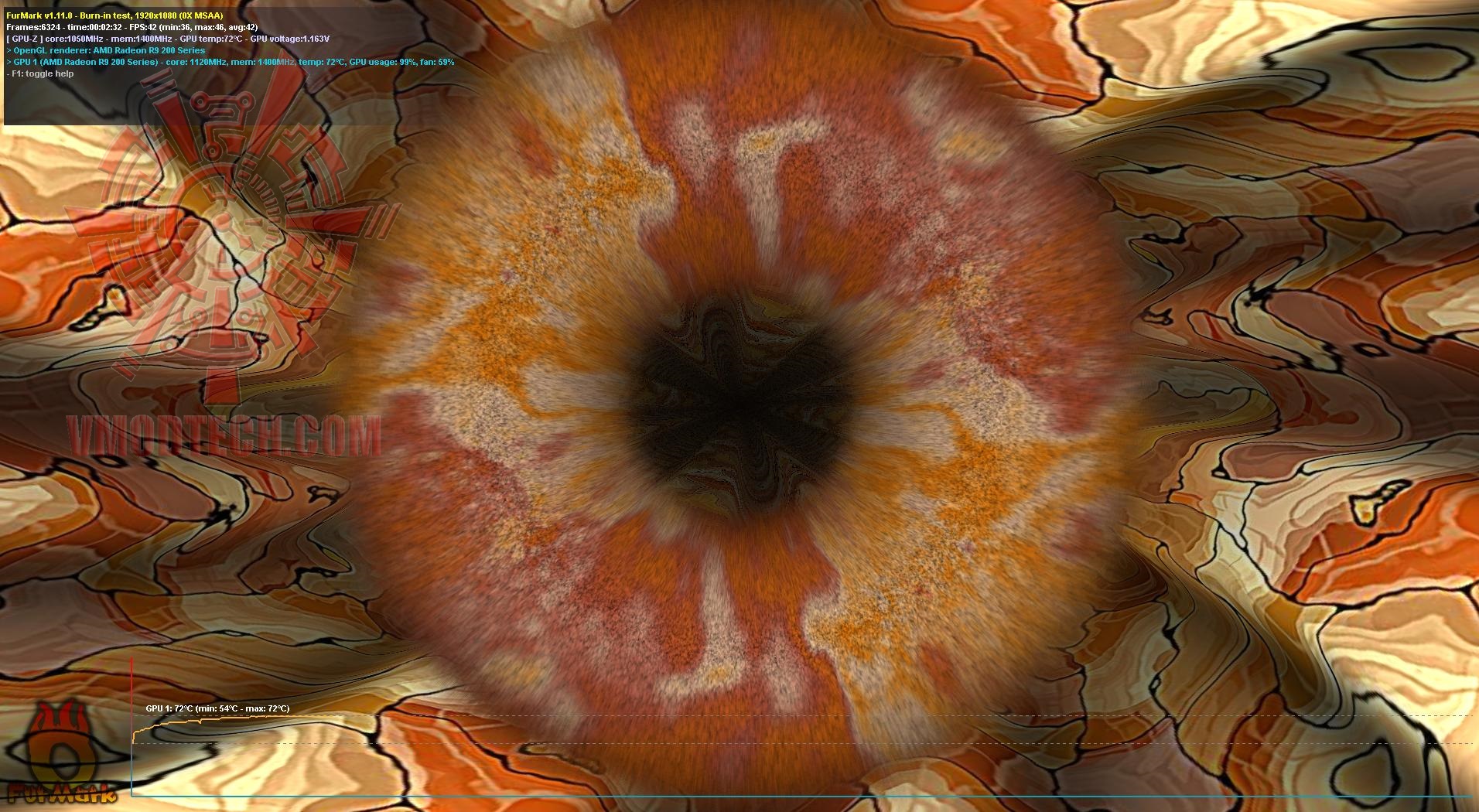 อุณหภูมิของการ์ดขณะ Furmark นั้นจะอยู่ที่ไม่เกิน 72 องศา รอบพัดลมออโต้ 59 เปอร์เซนต์ ถือว่าไม่ร้อนครับเสียงเบามาก