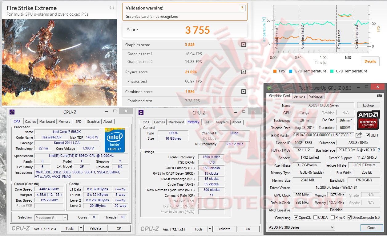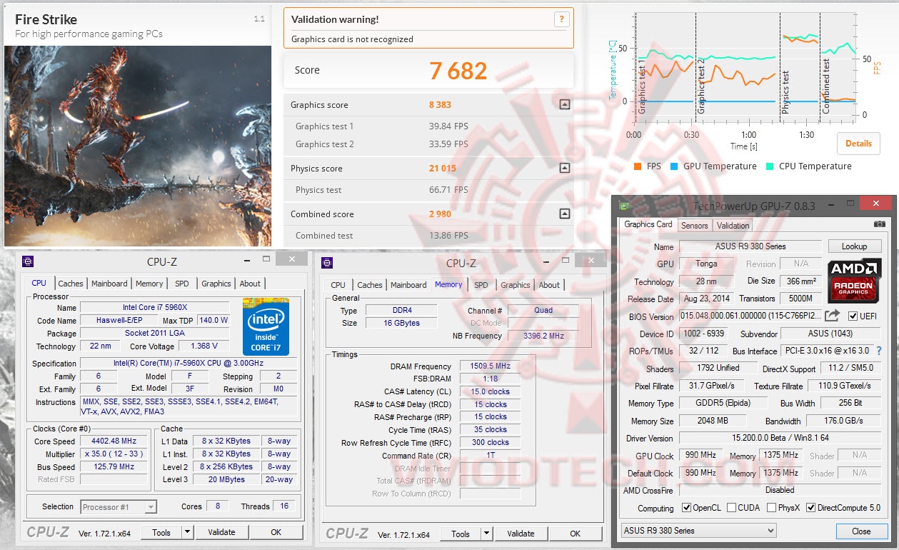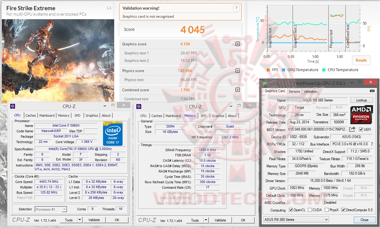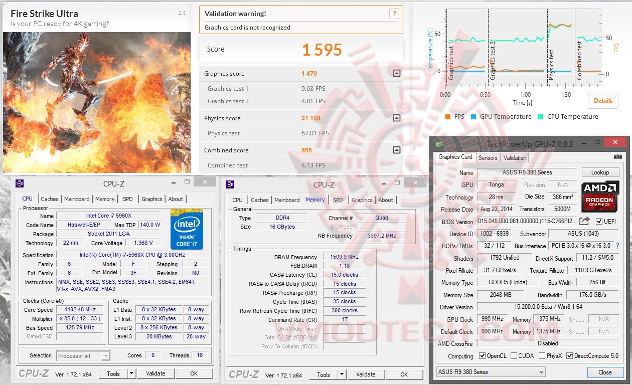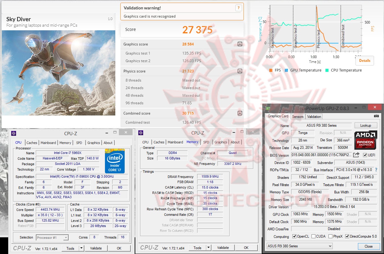 ASUS Radeon R9 380 STRIX GAMING Overclock @ 1063/1500 MHz Core/Mem