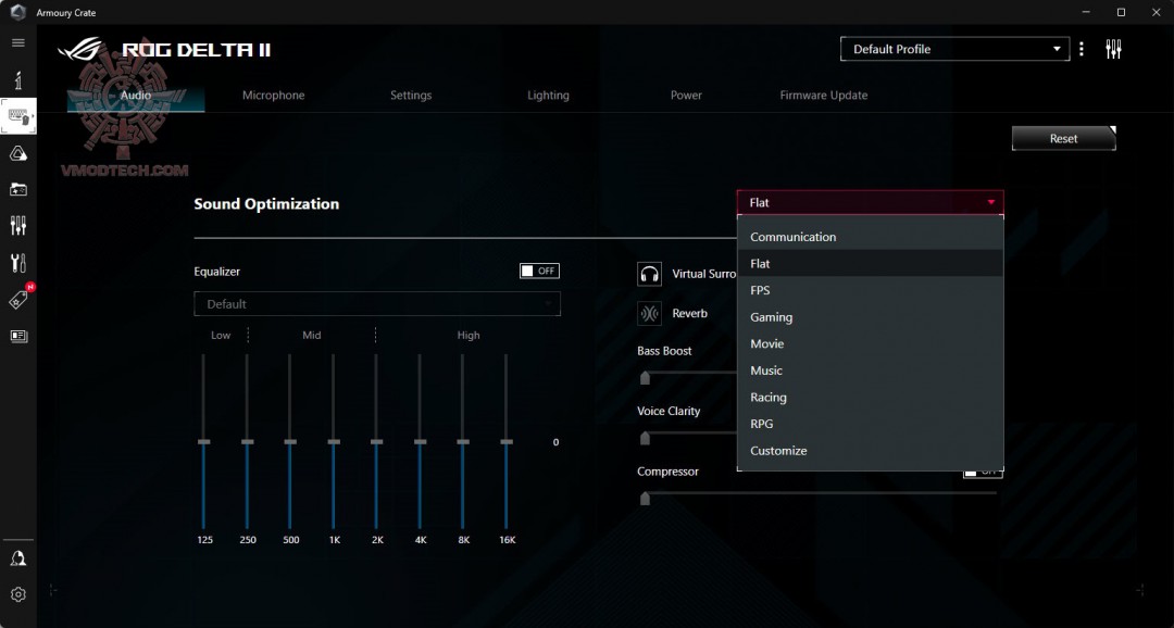 หน้าแรกในตัว app Amoury Crate นั้นจะเป็นหน้าสำหรับเลือกปรับแต่งเสียง ซึ่งแต่ละโหมดของเสียงจะให้ความแตกต่างได้ชัดเจนมากครับ