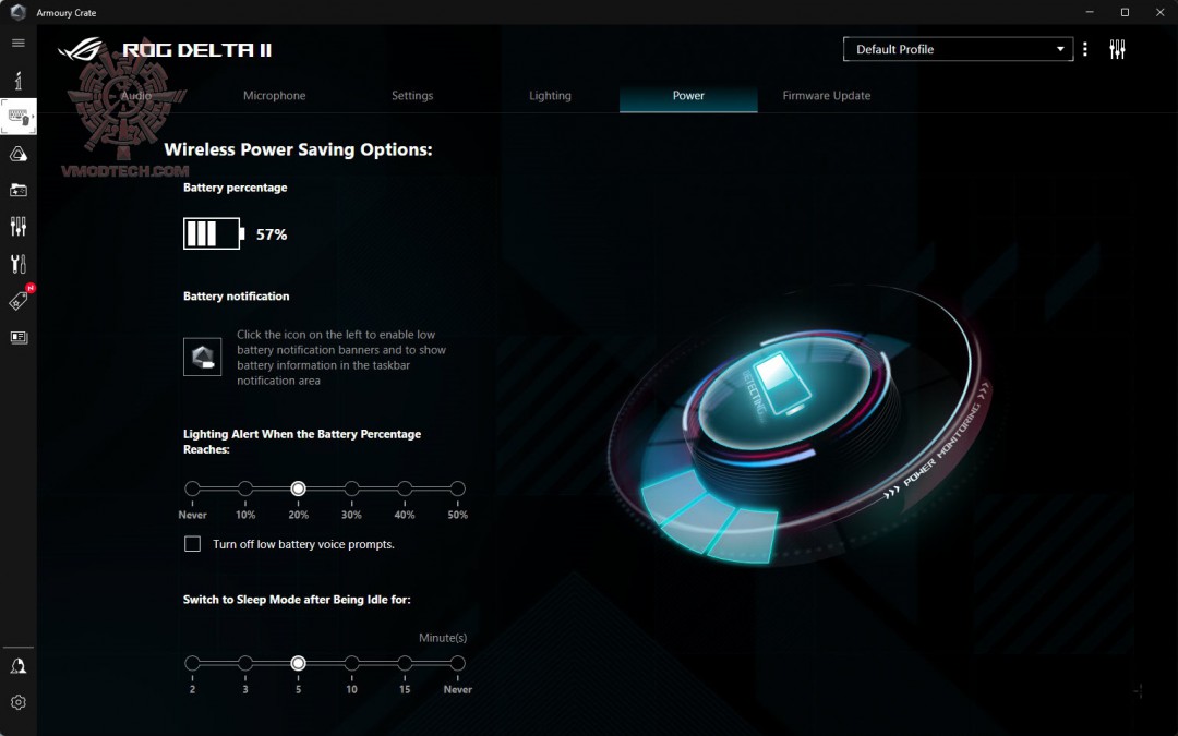 ส่วนหน้านี้จะเอาไว้ตั้งค่าการใช้พลังงานเมื่อเชื่อมต่อผ่านทางไร้สายครับ อ้อ มันค่อนข้างจะชาร์จเร็วทีเดียวนะครับสำหรับ ROG Delta II นี้