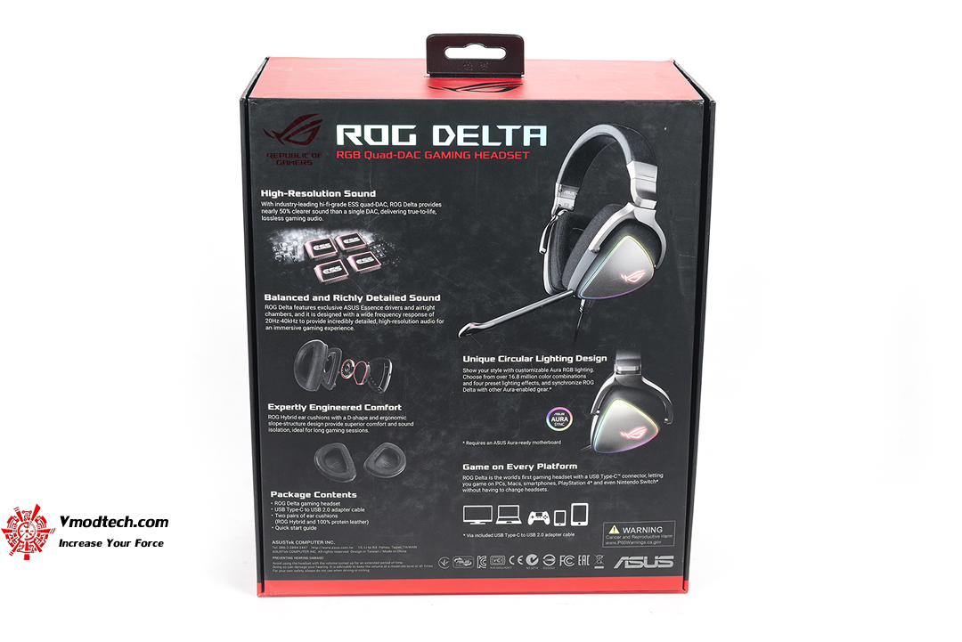 หน้าตากล่องบรรจุของ ASUS ROG DELTA นั้นออกแบบมาแบบเรียบๆด้วยโทนสีขาวดำ ด้านหลังมีรายละเอียดด้านเทคนิคมีแสดงไว้ที่ด้านหลังกล่องครับ