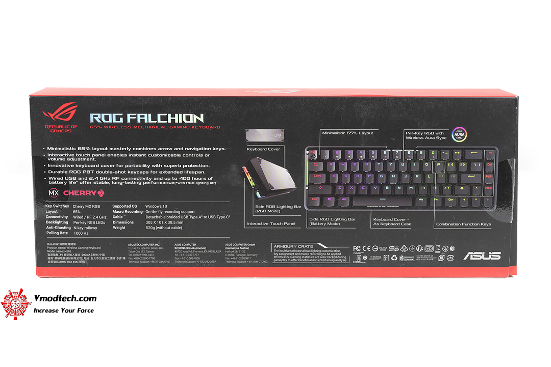 ตัวกล่องบรรจุ ROG Falchion นั้นมีขนาดกำลังดีครับ ดีไซน์ด้วยโทนสีแดงสวยงาม รายละเอียดทั้งหมดนั้นมีแสดงมาที่ด้านหลังกล่องอย่างครบถ้วน