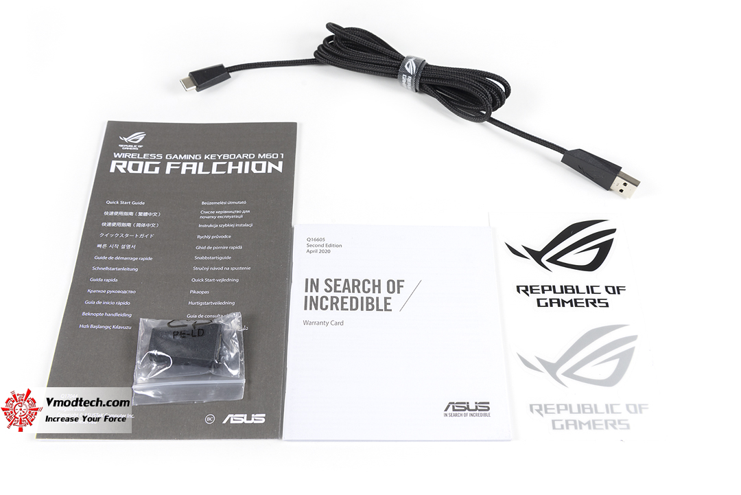 ภายในกล่องนั้นก็จะมีคู่มือ สติ๊กเกอร์ คู่มือ หัวแปลงการเชื่อมต่อ USB Type-A to Type-C พร้อมทั้งมีสายถักมาให้ครับ