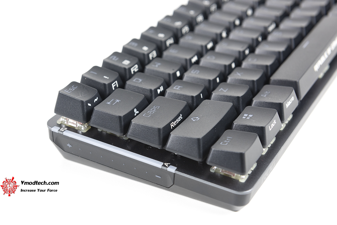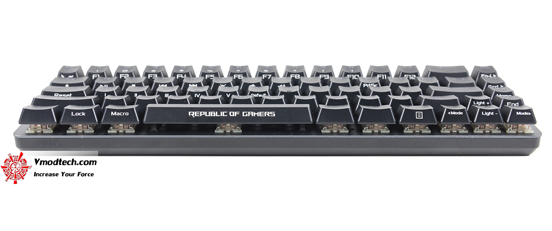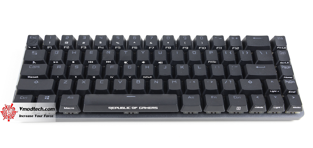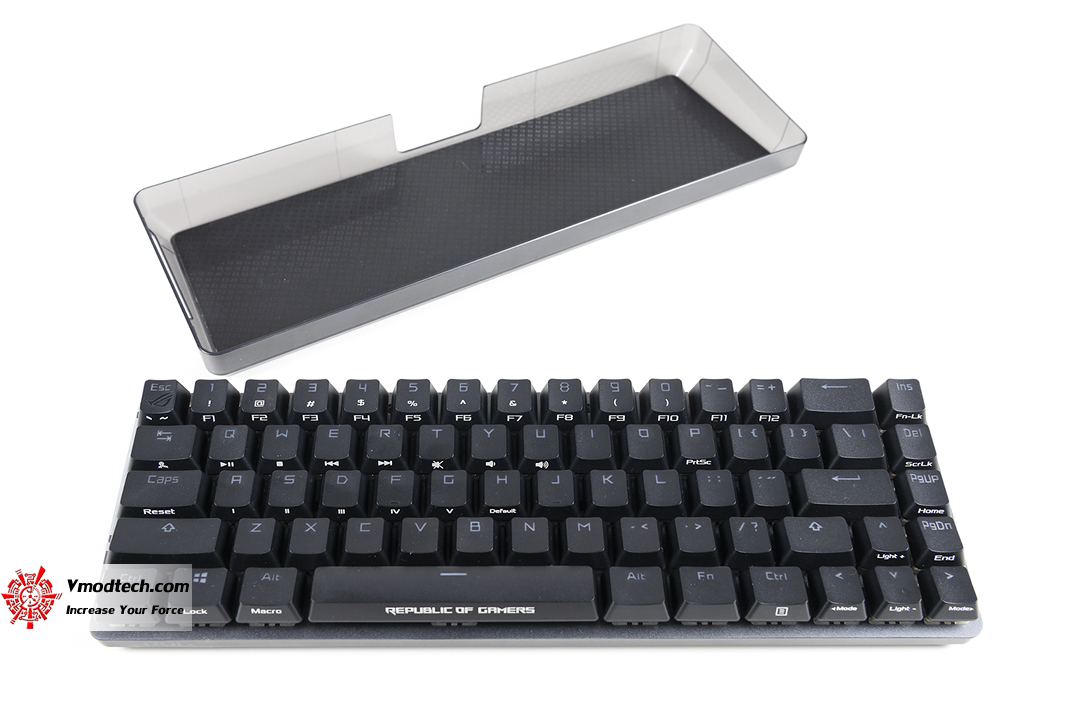 ตัว ROG Falchion ก็จะมีหน้าตามาตรฐานและเลย์เอาท์ที่แปลกตา โดยการออกแบบนี้ทำให้ตัวคีย์บอร์ดมีขนาดเล็กมาก