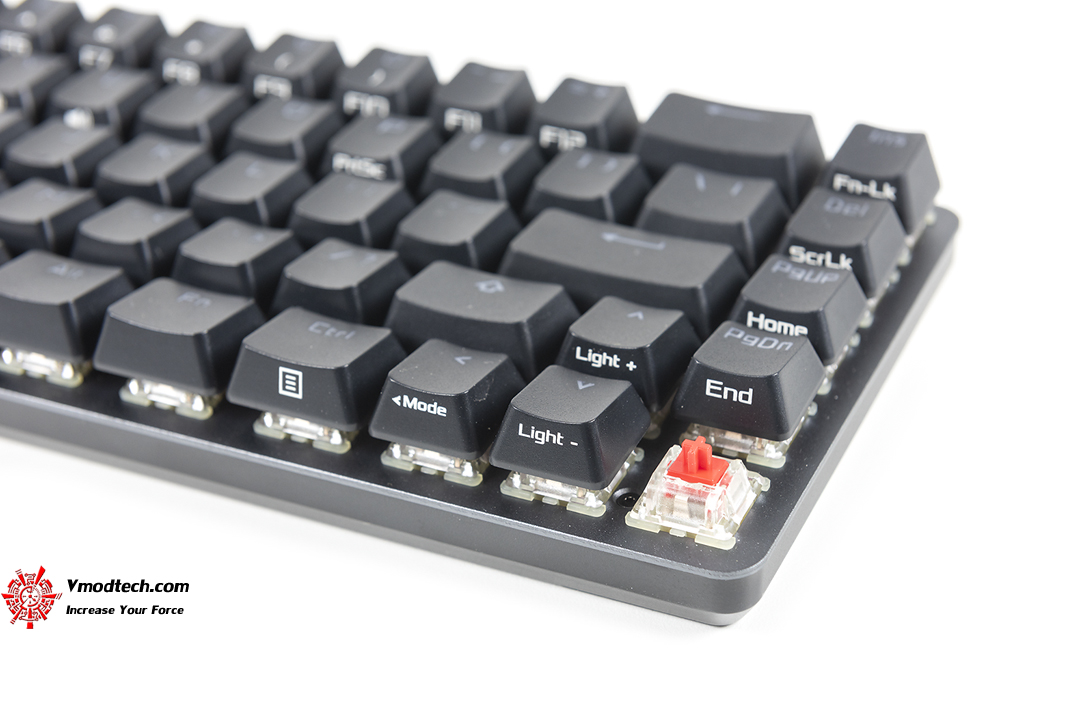 ในมุมนี้ของรูปจะเห็นสวิทซ์แบบ Cherry MX Red RGB และปุ่ม Mode ที่จะใช้ประกอบกับปุ่มต่างๆเพื่อควบคุมครับ สามารถดูได้จากคู่มือได้เลย