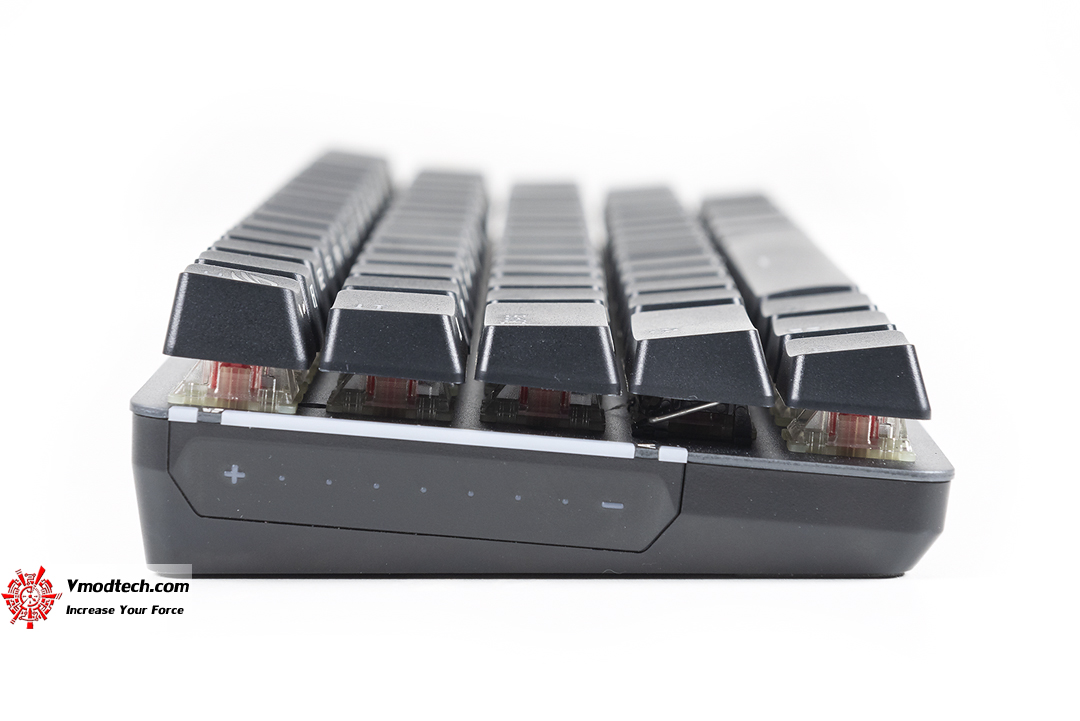 สวิทซ์นั้นเลือกใช้ Cherry MX Red RGB ซึ่งมีจุดเด่นที่ให้จะให้แรงกดที่เสถียร ต้องใช้แรงกดระดับนึง และไม่มีเสียงคลิ๊กเหมือนสีฟ้าหรือสีน้ำตาล โดยสีแดงนี้จะให้ฟีลลิ่งในการกด การพิมพ์ที่ดีมากสำหรับผู้ที่ชอบการพิมพ์แบบสัมผัส รวมถึงสามารถบันทึกชุดคำสั่งได้จากการกดปุ่มโดยตรง ไม่ต้องการซ๊อฟแวร์แต่อย่างใด รวมถึงสามารถปรับเพิ่มหรือลดเสียงโดยการลูบบริเวณสันด้านข้างของตัวคีย์บอร์ดที่ด้านซ้ายมือ สะดวกมาก รวมถึงสามารถบันทึกเป็นโพรไฟล์ได้ด้วย ครบถ้วนครับสำหรับความต้องการใช้งานแมกคานิคอล เกมส์มิ่ง คีย์บอร์ด ต่อไปเรามาชมรายละเอียดกันเลย