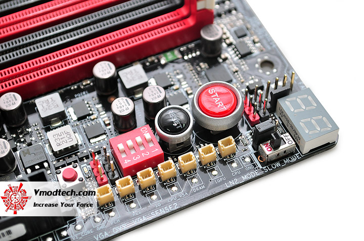 ...สวิทซ์ Start และ Reset Ram OK! จุดเชื่อมต่อ VGA Hotwire ไฟ DEBUG บอกสถานะการบูต จะอยู่บริเวณด้านข้างสล็อตหน่วยความจำทั้งหมดนะครับ