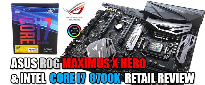 ASUS ROG MAXIMUS X HERO มากันในแบรนด์ ASUS ในซีรี่ย์ ROG ที่จัดเต็มทั้งดีไซน์การออกแบบตามแบบฉบับ ROG ที่เน้นสีสรรของไฟ AURA SYNC RGB ที่มีความโดดเด่นพร้อมเชื่อมต่อกับบรรดาอุปกรณ์ภายนอกได้อีกด้วย ในส่วนของบรรดาฟีเจอร์ให้อย่างมากมายครบครันตามสไตล์เมนบอร์ดของ ROG ซีรี่ย์ ไม่ว่าจะเป็น Aura Sync , M.2 Heatsink , SupremeFX , Sonic Studio III , Intel Gigabit Ethernet, LANGuard, Dual M.2, USB 3.1 Gen 2 Type-A , Type-C connectors , 5-Way Optimization , Gaming durability: ASUS SafeSlot , GameFirst IV , ให้กันมาอย่างครบถ้วนเลยครับ การจัดวางอุปกรณ์ต่างๆนั้นก้ทำได้อย่างลงตัวครับด้วยฮีตซิงค์ภาคจ่ายไฟที่ใหญ่โตสวยงามพร้อมมีไฟแสดงผล RGB ที่สวยงามและฮีตซิงค์ชิบเซ็ตก็มีไฟ ROG LOGO RGB LED แสดงผลด้วยเช่นกันครับ ส่วนการทดสอบในวันนี้ผมจะจัดเต็มกับซีพียูอินเทล Intel 8th Gen "Coffee Lake" รุ่นใหม่ล่าสุดอย่าง Intel Core i7 8700K รุ่นใหม่ที่เป็นตัววางจำหน่ายหรือตัว Retail จัดกันแบบเต็มๆให้ท่านได้ชมกันตลอดการทดสอบครับว่าตัวที่วางจำหน่ายที่ไม่ใช้ตัว ES นั้นประสิทธิภาพจะดีมากน้อยขนาดไหน เดี๋ยวเราไปชมในบททดสอบได้เลยครับ