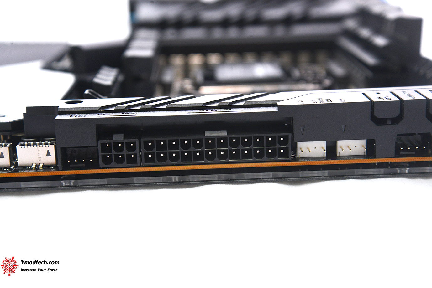 การออกแบบช่องต่อไฟ 24พินก็จะอยู่ด้านหน้าของเมนบอร์ดครับ พร้อมช่องต่อไฟ 6พินอีก 1ช่อง และมีช่อง DIY ไฟ ต่างๆเพิ่มเติมกรณ๊ของการโอเวอร์คล๊อกแบบเอ๊กตรีมนั่นเองครับ