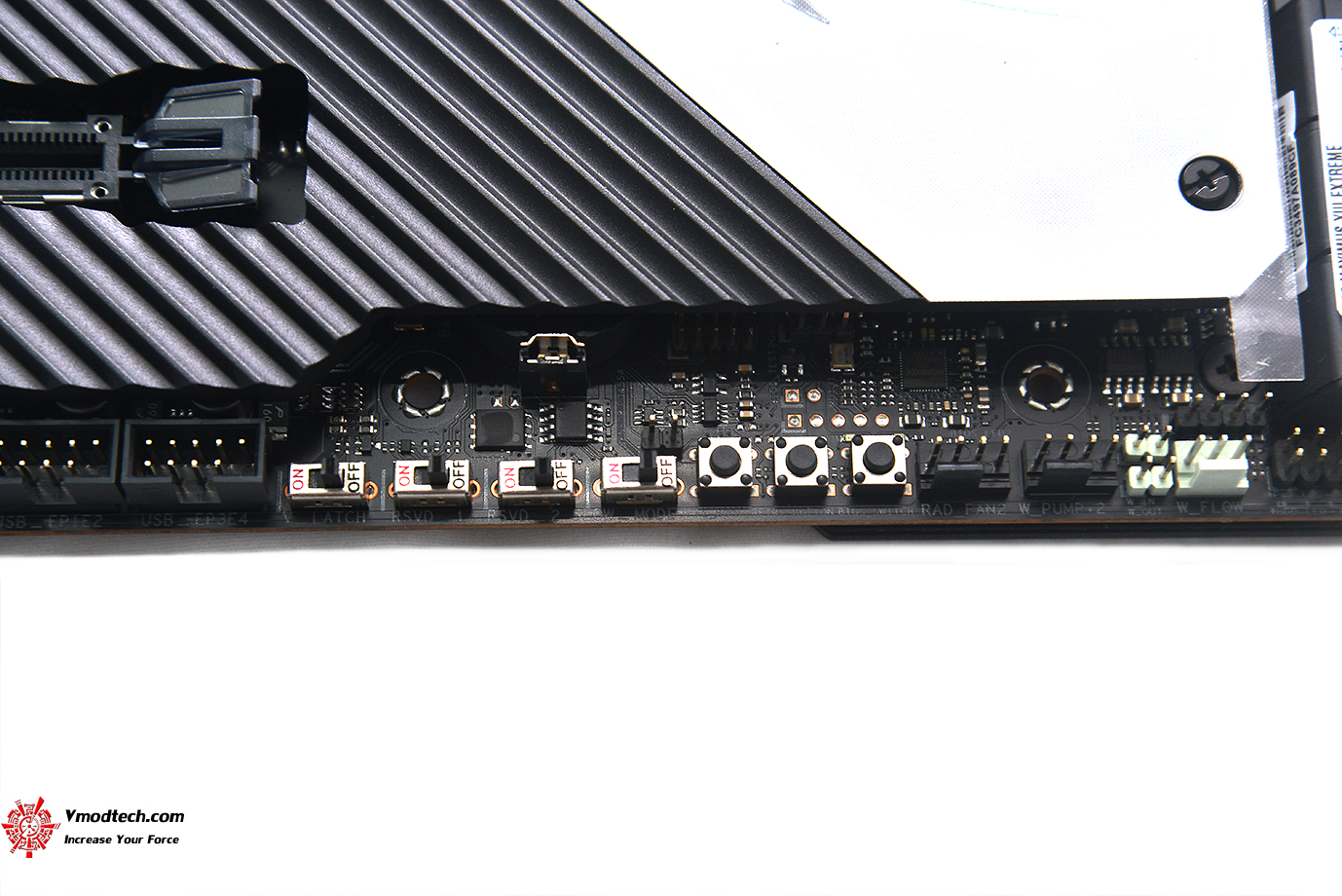ด้านล่างก็มีบรรดาปุ่ม V-LATCH SWITCH , ASUS HYDRANODE ที่เอาไว้ปรับแต่งใช้งานสำหรับบรรดานัก DIY ได้ใช้งานกันครับ
