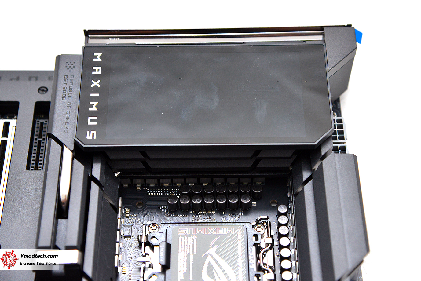 ด้านบนมีฮีตซิงค์ VRM HEATSINK พร้อมไฟแสดงผลจอ LCD แสดงผลอย่างสวยงาม