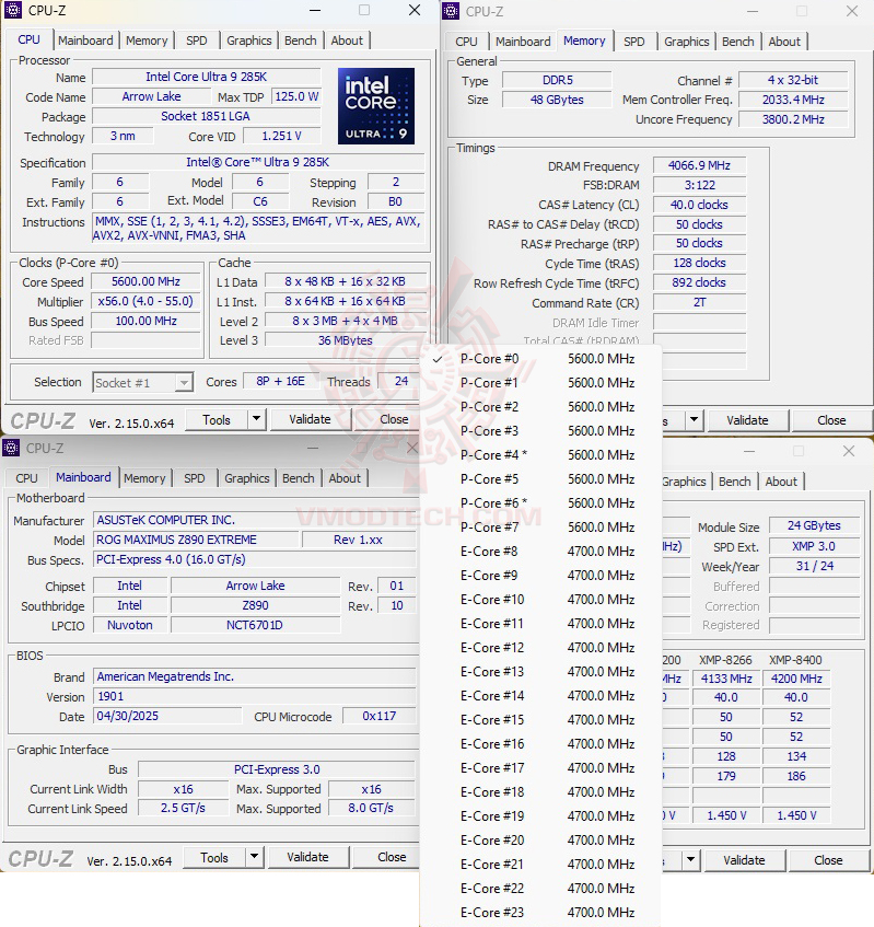 ในการทดสอบนั้นใช้ซีพียู Intel Core Ultra 9 285K รุ่นใหม่ล่าสุด โอเวอร์คล๊อกใช้งานที่ความเร็ว 5.6Ghz 24C/24T ไฟเลี้ยง Vcore 1.251v บัสแรม DDR5 8133Mhz ใช้งานกับเมนบอร์ด ASUS ROG MAXIMUS Z890 EXTREME ใช้งานกันได้แรงเต็มประสิทธิภาพอย่างมีเถียรภาพตลอดการทดสอบเลยครับ