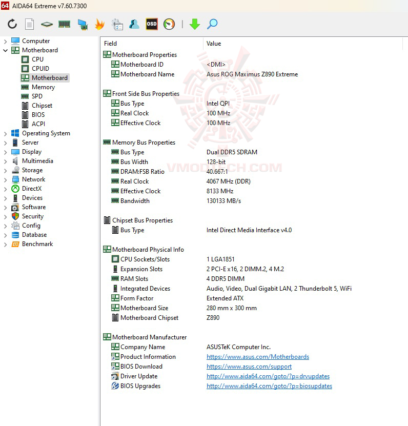 | .Motherboard | . ASUS ROG MAXIMUS Z890 EXTREME |