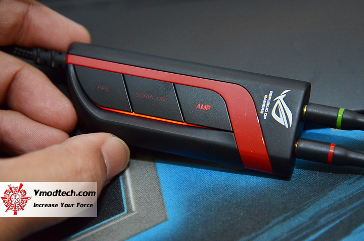 บนตัว ROG Spitfire USB audio processor นั้นเราสามารถปรับจูนได้ครับ ขวาสุดจะเป็นการเปิด/ปิดภาคขยาย Headphone ตรงกลางจะเป็นการเปิดปิดวงจรจำลองเสียง 7.1 channel ส่วนซ้ายสุดจะเป็นการเปิด/ปิด EQ ที่ปรับไว้รองรับการเล่นเกมส์ FPS ที่เน้นเสียงกลางนั่นเอง ลองเริ่มด้วยเพลงเบาๆสบายๆของผมกันก่อนด้วยบอสซ่านุ่มๆลอยๆ เสียงนั้นไม่มีรายละเอียดมากนัก เสียงไม่หวาน ฟังแล้วเฉยๆครับ จริงๆผมก็แปลกใจพอควรครับเพราะอาจจะตั้งความหวังไว้สูงด้วย ลองเล่นเกมส์บ้าง อืม กดเปิดใช้ภาคขยายในตัว ROG Spitfire USB audio processor เสียงอิ่ม แรงปะทะเพิ่มขึ้น เล่นเกมส์มันมากทีเดียว มีแววแล้วครับแบบนี้.