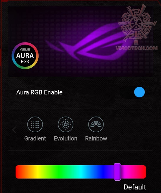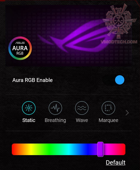 ไม่ลืมจุดเด่นอีกอย่างคือการแสดงแสงสีและเอฟเฟกบนโลโก้ ROG ที่บนตัวถังด้านบนนะครับ เราสามารถปรับสีได้หลากหลายครอบคลุม RGB และเอฟเฟกอีก 7 รูปแบบเลยสวยมาก