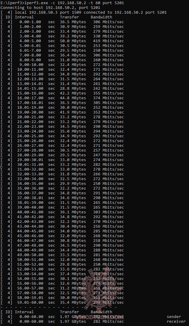 ฝั่ง client นั้นสามารถส่งผ่านข้อมูลได้เฉลี่ยที่ 282 เมกกะบิทต่อวินาทีครับ