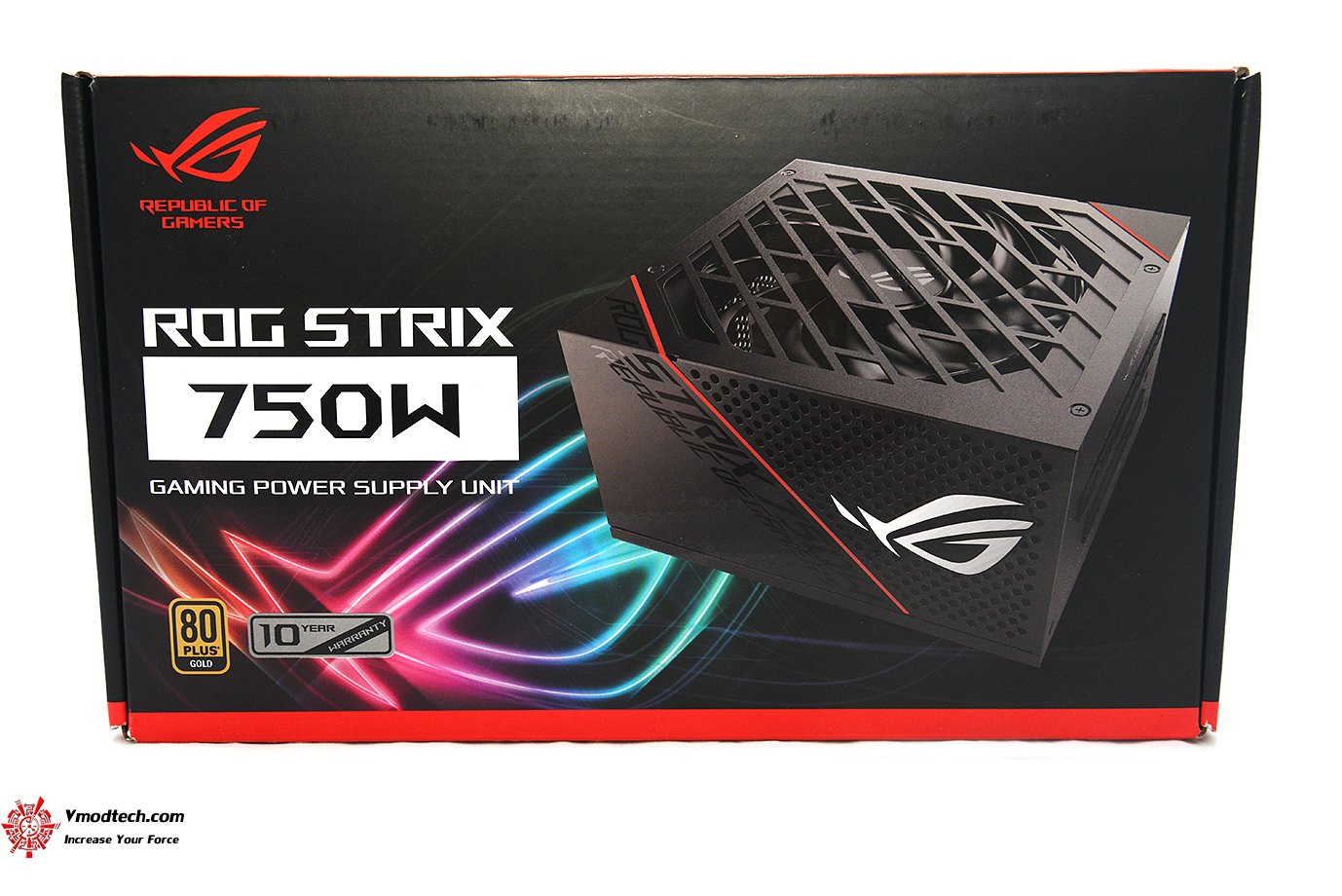 มตัวกล่องนั้นใหญ่โตเลยครับบอกชื่อรุ่น ASUS ROG STRIX 750W พร้อมบอกฟีเจอร์การทำงานต่างๆพร้อมมาตรฐาน 80Plus Gold กับการรับประกัน 10ปีเต็มกันเลยทีเดียว