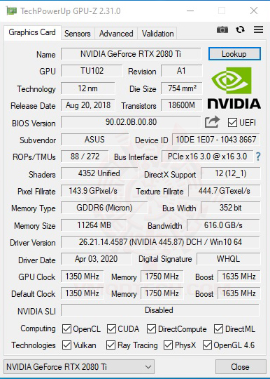 | .Graphic Card | . ASUS GeForce RTX 2080 Ti DUAL |