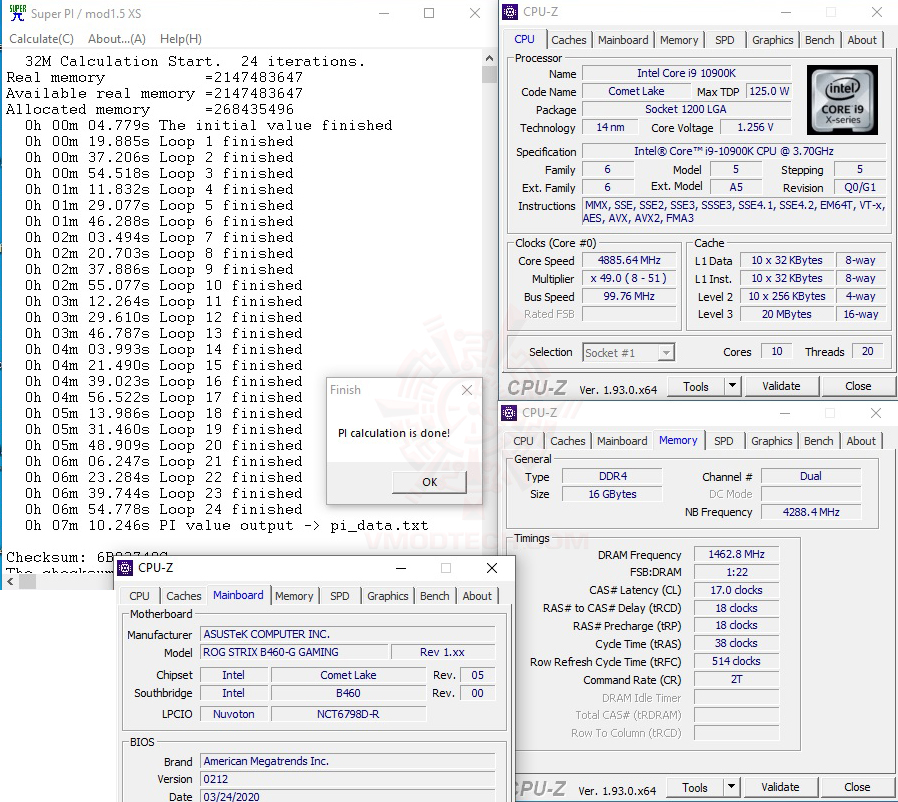 ASUS ROG STRIX B460-G GAMING REVIEW : SuperPI 1M 1Thread, 32M 1Thread & 32M 8Threads (5/9)