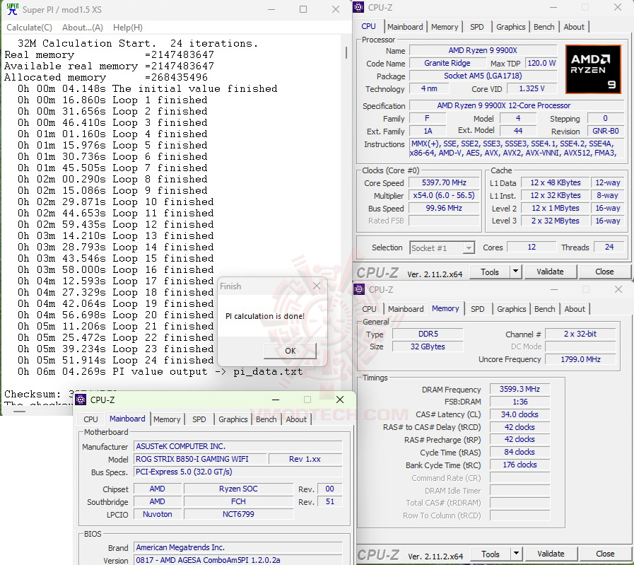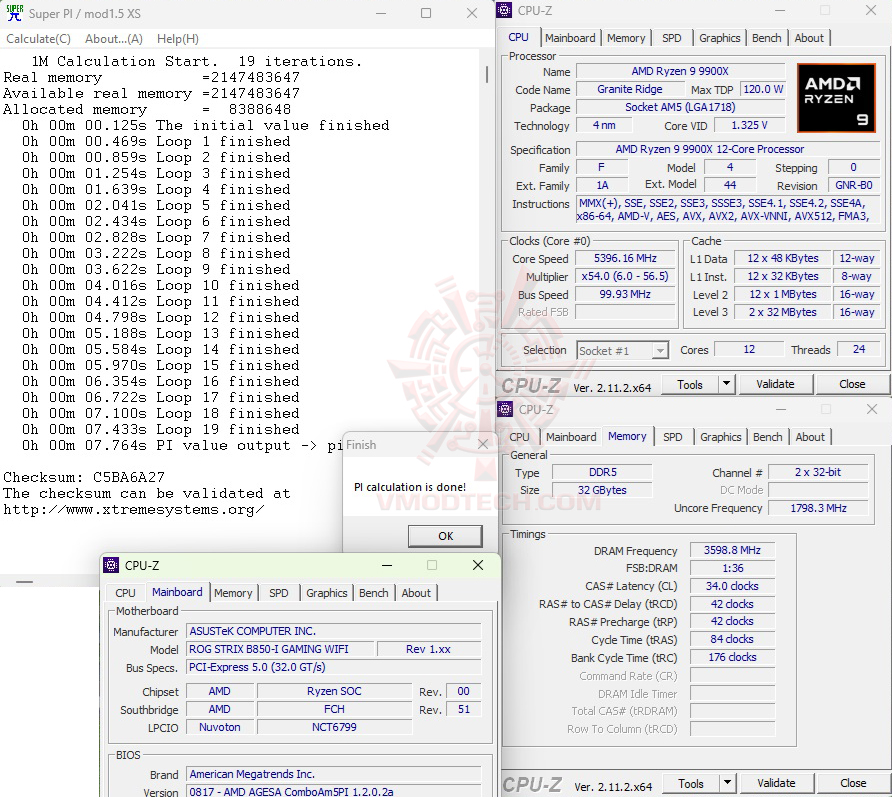 ASUS ROG STRIX B850-I GAMING WIFI REVIEW : SuperPI 1M 1Thread, 32M 1Thread & 32M 8Threads (4/9)