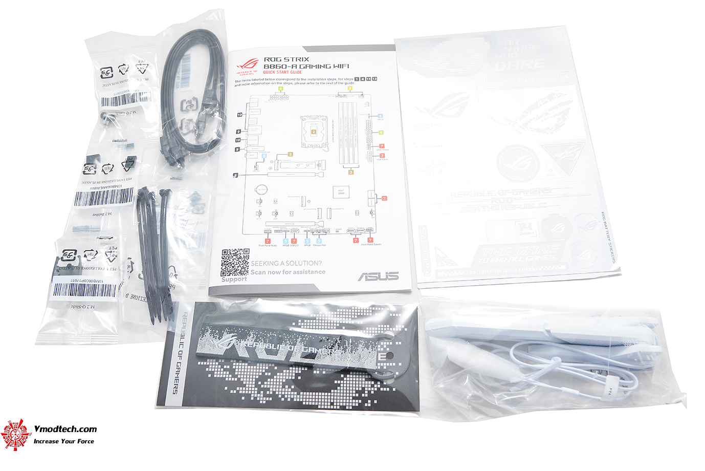 Cables 2 x SATA 6Gb/s cables Miscellaneous 1 x ASUS WiFi Q-Antenna 1 x Cable ties package 1 x M.2 Q-Latch 1 x M.2 Q-Slide 1 x ROG key chain 1 x ROG Strix stickers 4 x M.2 rubbers Documentation 1 x Quick start guide