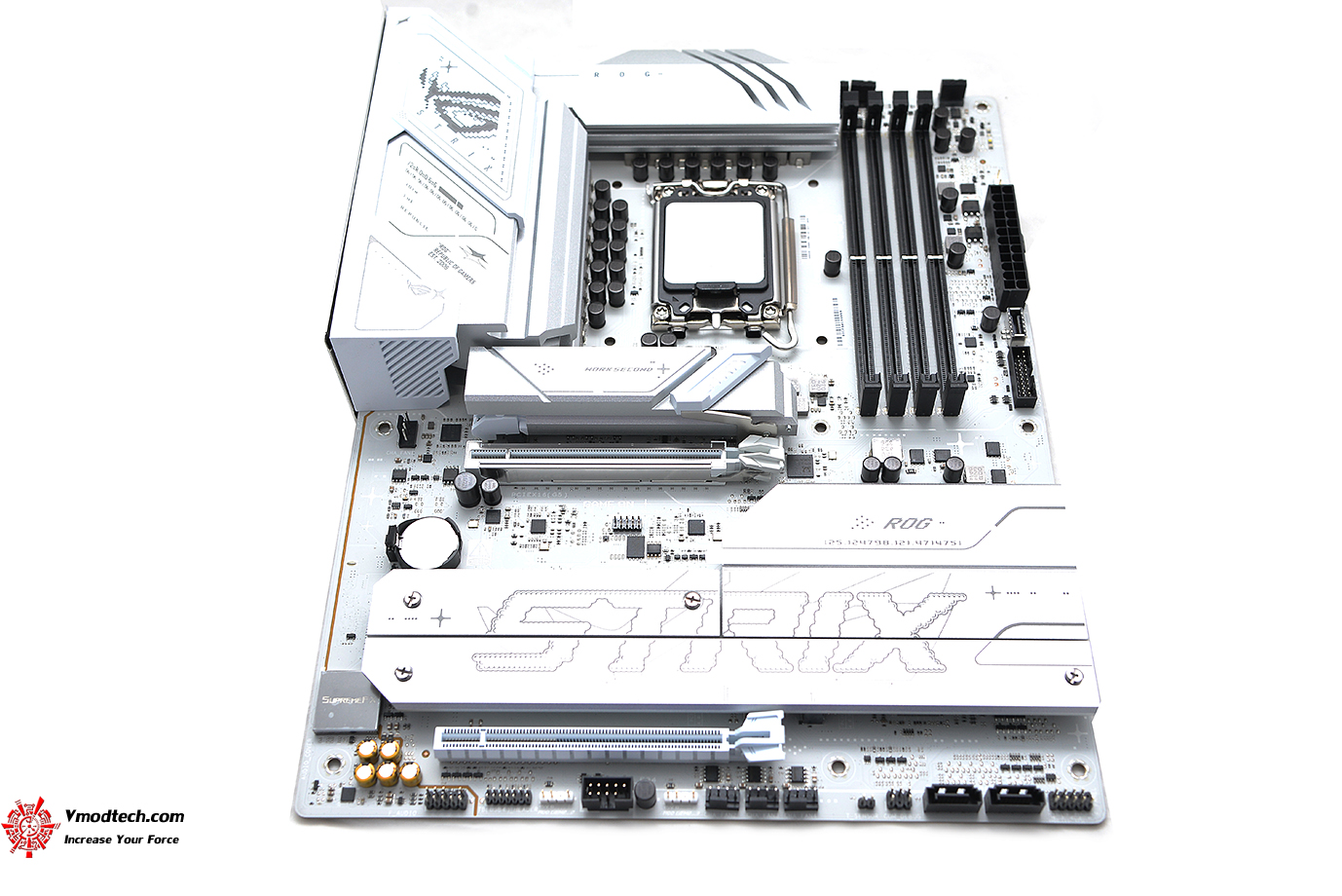 ตัวเมนบอร์ด ASUS ROG STRIX B860-A GAMING WIFI สีขาวล้วนสวยงามตามสไตล์ ROG STRIX สวยงามโดดเด่นกว่ารุ่นก่อนครับ