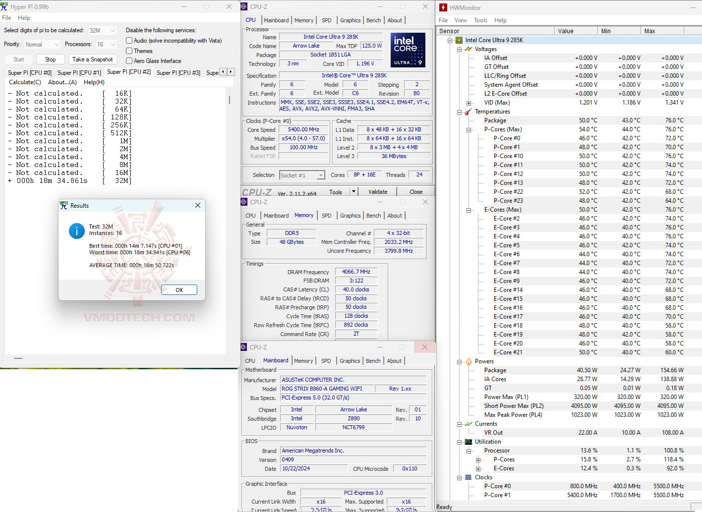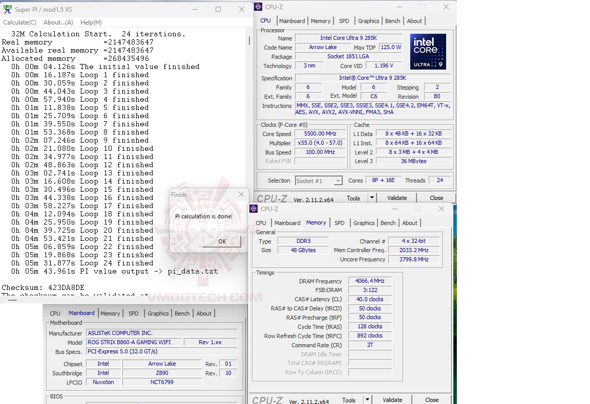 ASUS ROG STRIX B860-A GAMING WIFI REVIEW : SuperPI 1M 1Thread, 32M 1Thread & 32M 8Threads (5/10)