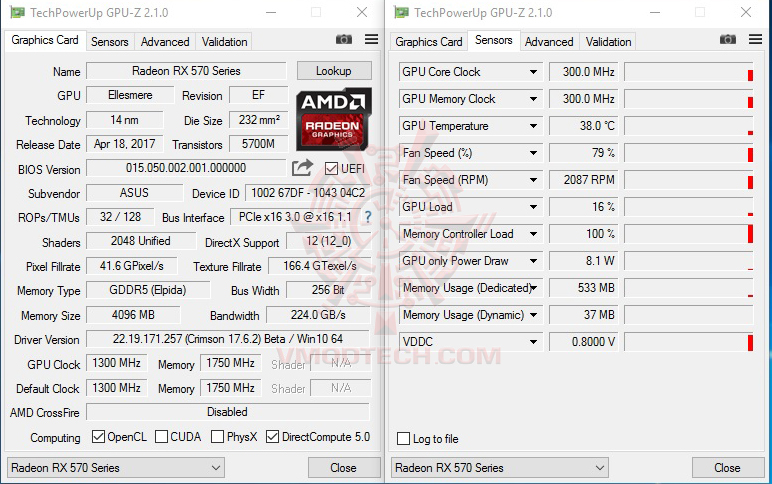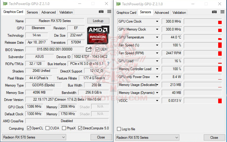 ความเร็วเดิมๆของ ASUS ROG Strix Radeon RX 570 OC edition 4GB GDDR5 ครับ Baseclock Core 1300Mhz Memory 1750Mhz เป็นสเปกเดิมๆที่โอเวอร์คล๊อกกันมาจากโรงงานครับ แรงตั้งแต่เริ่มต้นให้เลยครับ