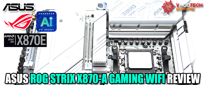 สวัสดีครับทุกท่านที่เยี่ยมชมเว็บไซต์ Vmodtech.com ขอเรา วันนี้ก็มีบทความทดสอบเมนบอร์ดมาให้ทุกท่านได้รับชมกันครับกันแบบต่อเนื่องครับ ซึ่งวันนี้ก็ยังอยู่กับเมนบอร์ดแพลตฟอร์ม AMD รุ่นใหม่ล่าสุดในชิปเซ็ต X870 จากแบรนด์ของทาง ASUS ที่ออกแบบมาให้รองรับซีพียู AMD ZEN5 ในซีรี่ย์ RYZEN 9000 รุ่นใหม่ล่าสุด โดยมากันในรุ่น ASUS ROG STRIX X870-A GAMING WIFI รุ่นใหม่ล่าสุดในตระกูล ROG STRIX ที่เป็นเมนบอร์ดเกมมิ่งเอาใจเกมเมอร์ที่เราคุ้นเคยรู้จักกันเป็นอย่างดีครับ โดย ASUS ROG STRIX X870-A GAMING WIFI มีดีไซน์ที่โดดเด่นครับด้วยโทนสีขาวทั้งเมนบอร์ดทั้ง PCB ตัวฮีตซิงค์เน้นโทนสีขาวสลับฮีตซิงค์ VRM Heatsink , M.2 Heatsink สีเทาเงินมาพร้อมไฟ RGB ด้านบนแสดงผลได้อย่างสวยงามลงตัว ฟีเจอร์เด่นๆ ก็มาพร้อมแอปพลิเคชัน AI ขั้นสูง รองรับแรม DDR5 รองรับ PCIe 5.0 เต็มรูปแบบพร้อม M.2 2ช่อง (PCIe 5.0) มีพอร์ต USB4® 1 คู่  และ WiFi 7 ให้พร้อมใช้งานแบบเต็มๆ ครับ รวมไปถึงบรรดาช่องเชื่อมต่อที่พร้อมใช้งาน DIY ติดตั้งชุดน้ำ AIO , ชุดพัดลมต่างๆ ก็มีให้ครบครัน ในส่วนของภาคจ่ายไฟแบบ 16(90A)+ 2(90A)+ 2(80A) Power Stages ที่พร้อมรองรับการโอเวอร์คล๊อก ระบบ AI Networking II , AI Cooling II ที่ใช้งานง่ายสะดวกกับการให้ AI ปรับจูนอย่างวอัจฉริยะ ส่วนจะมีประสิทธิภาพความแรงขนาดไหนถูกใจสาวก AMD ตระกูล ROG สายโอเวอร์คล๊อกกันบ้างหรือไม่เราไปชมกันเลยครับ