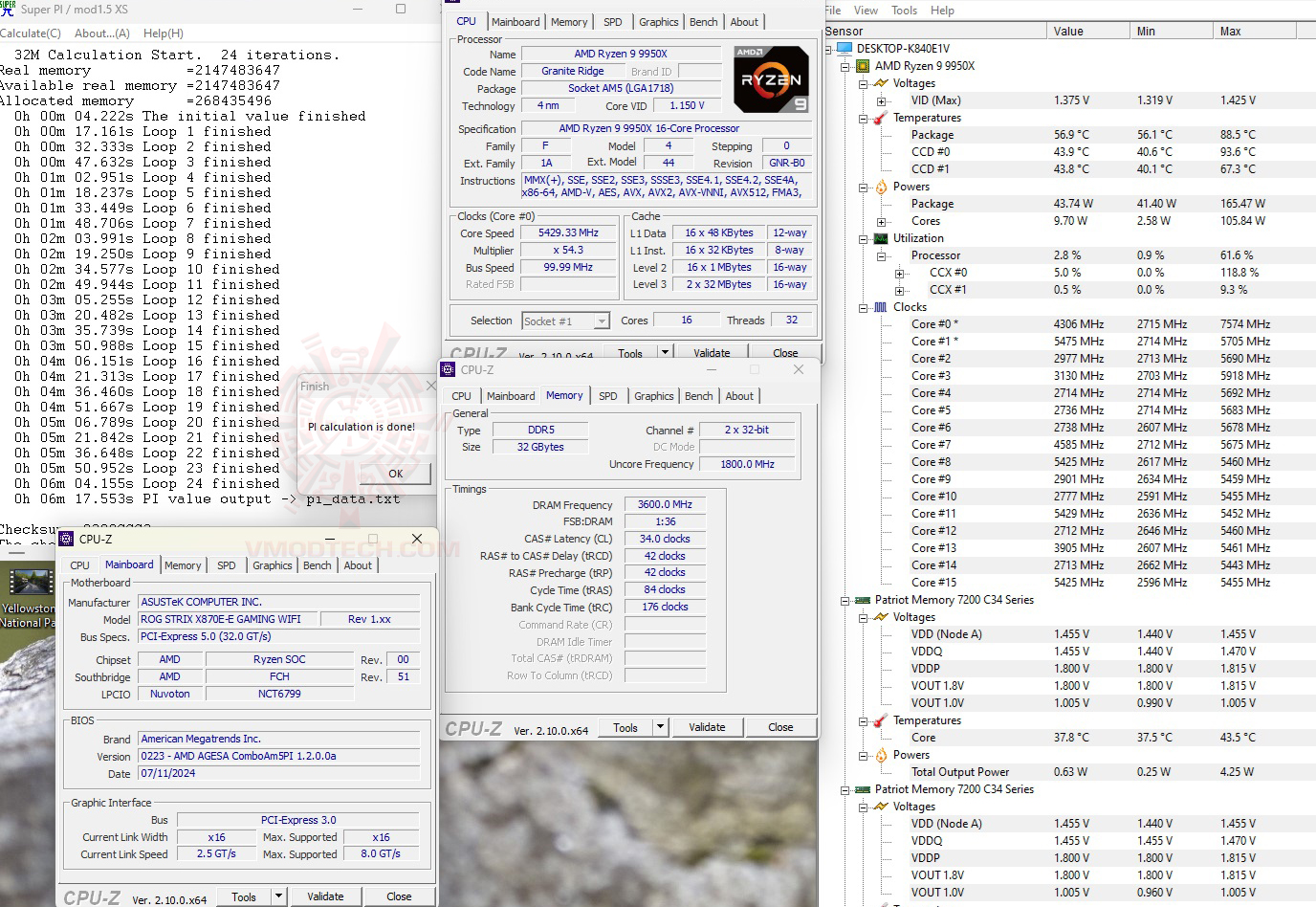 ASUS ROG Strix X870E-E Gaming WiFi Review : SuperPI 1M 1Thread, 32M 1Thread & 32M 8Threads (5/10)