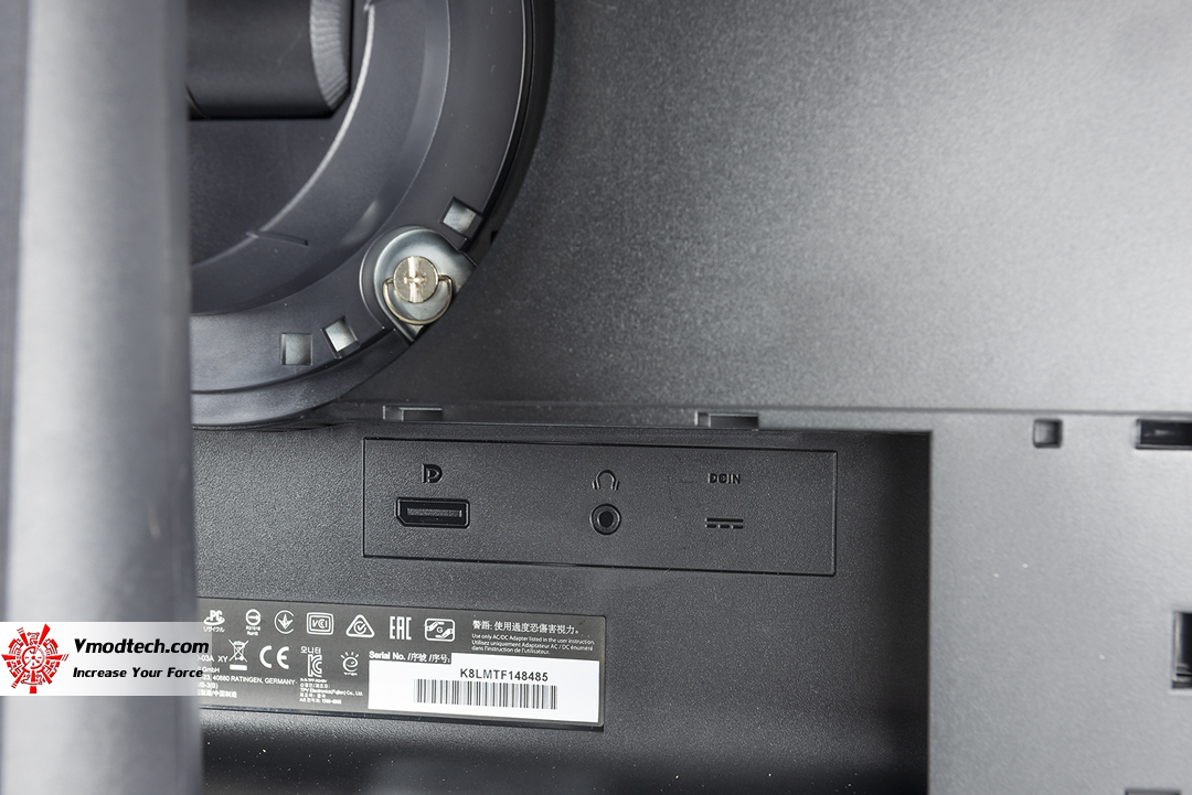 ด้านนี้ก็จะเป็นพอร์ทเชื่อมต่อแบบ DisplayPort ช่องเสียบหูฟัง และช่องเสียบไฟเลี้ยงเข้าจอครับ