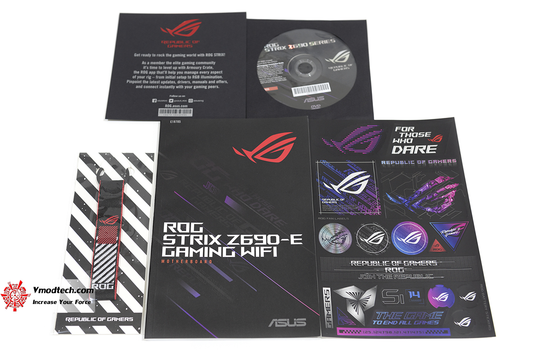 ภายในกล่องนั้นก็จะมีคู่มือ พวงกุญแจ ROG และบรรดาสติ๊กเกอร์ต่างๆ