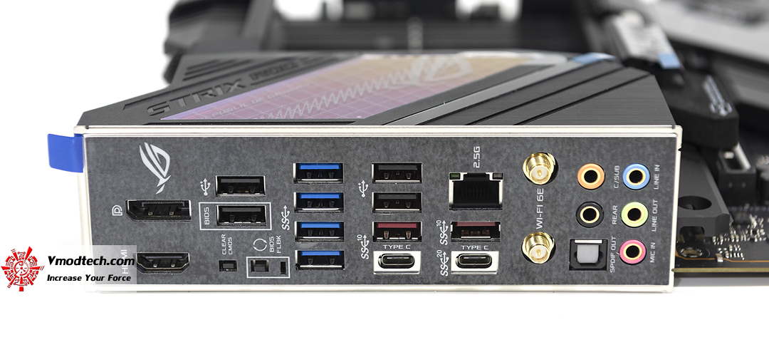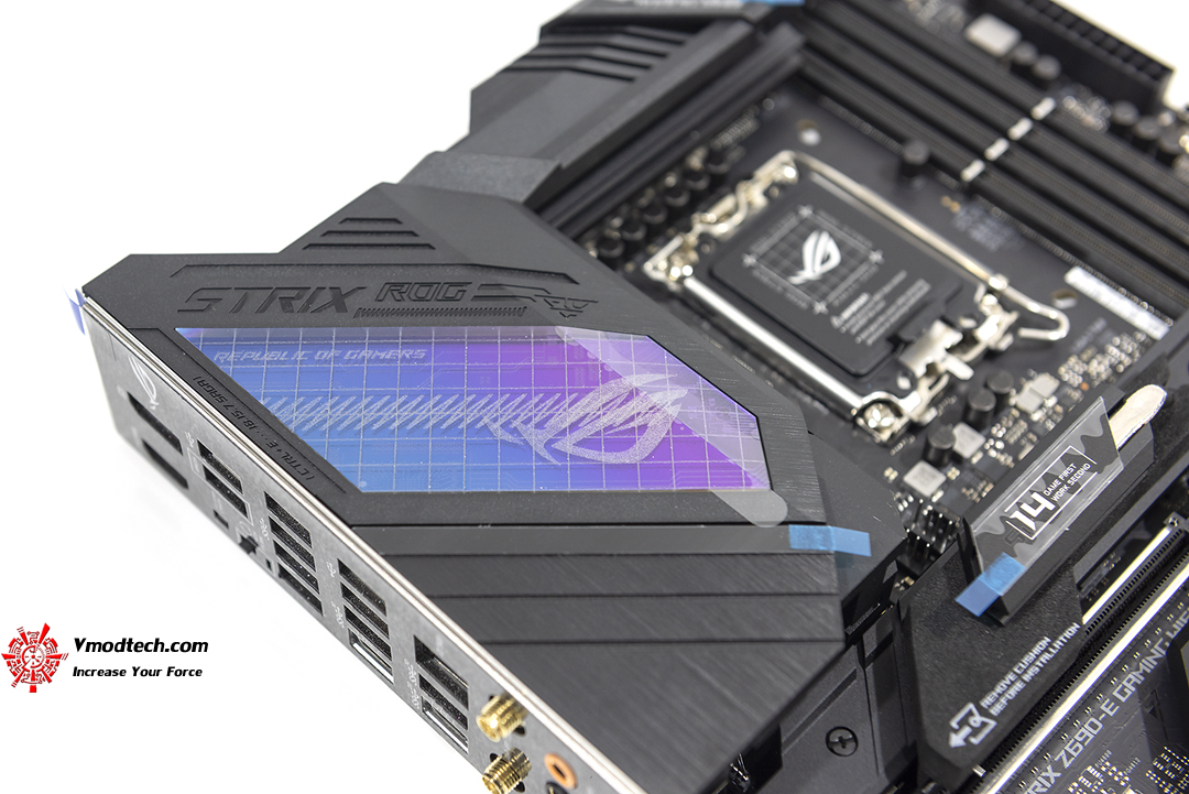 โลโก้ของ ROG STRIX บริเวณฝาครอบ Back I/O สวยงามดูมีเสน่ห์