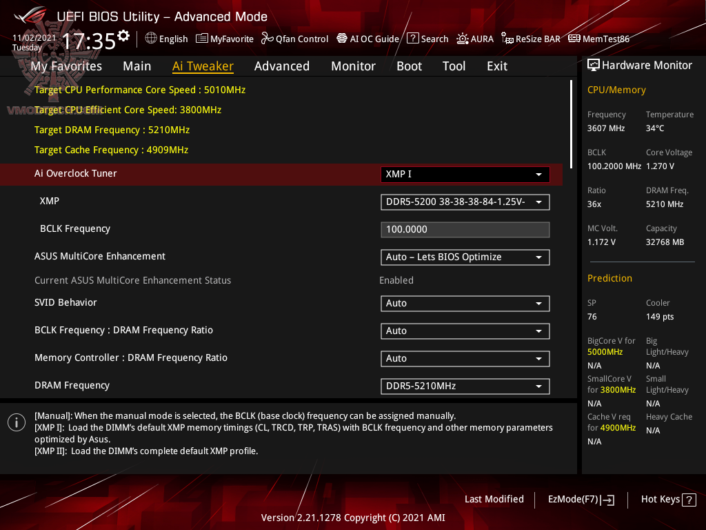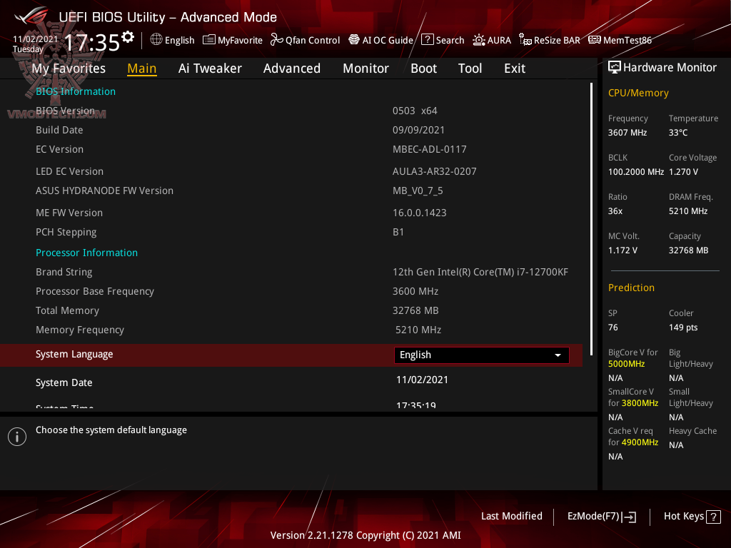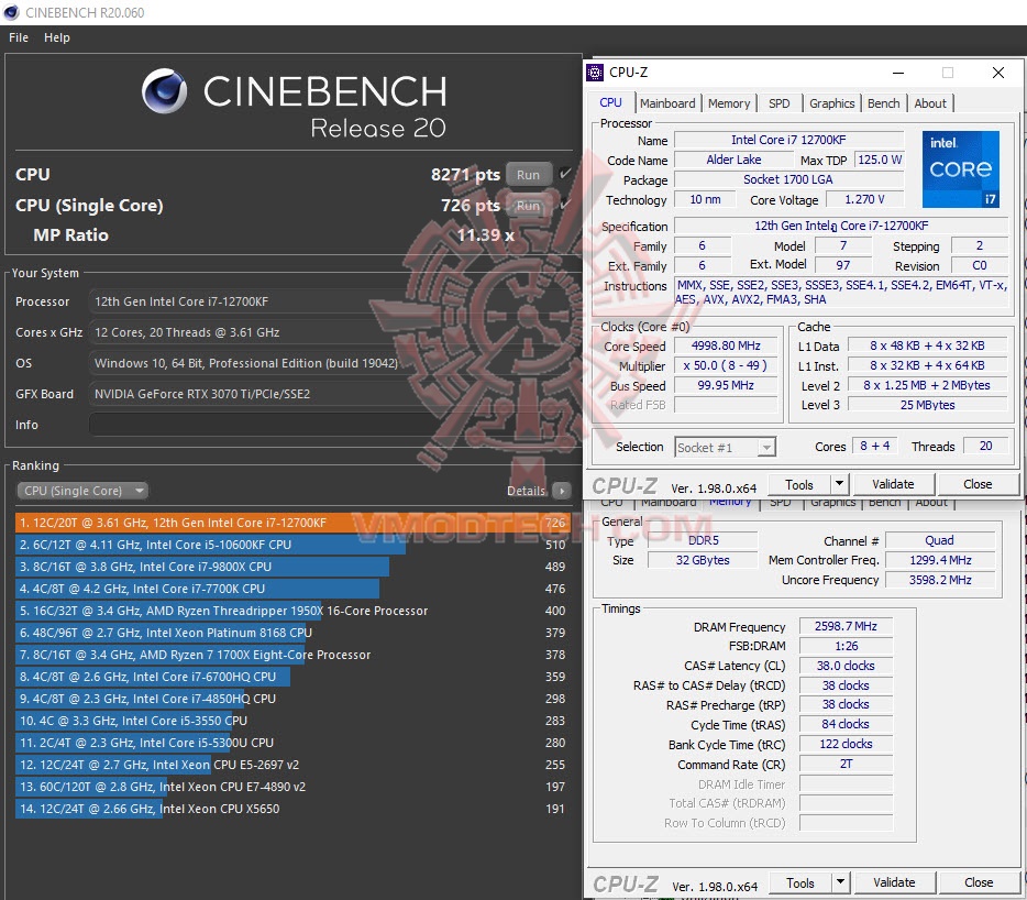 ความเร็วที่ใช้งานพื้นฐานของซีพียู INTEL CORE i7 12700KF จะอยู่ที่ 3.6 Ghz และจะมีบูตสูงสุดที่ 5.0 GHz สำหรับ Performance core ครับ และ Efficient Core จะมีความเร็วพื้นฐานที่ 2.7 GHz และจะบู๊สสูงสุดที่ 3.8 GHz ครับ บัสแรม DDR5 4800 Mhz CL40-40-40-76-116 2T 1.25v จากแรม Corsair Dominator RGB 32GB หลังจากที่ได้ทำการโอเวอร์คล๊อกขึ้นไปนั้นจะได้ความเร็วที่ 5.0 GHz จากตัวคูณ Performance Core 50 ด้าน Efficient Core นั้นจะวิ่งที่ตัวคูณ 40 ครับ ปรับมากกว่านี้จะไม่บู๊ต