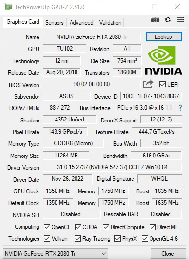 | .Graphic Card | . ASUS GeForce RTX 2080 Ti DUAL |