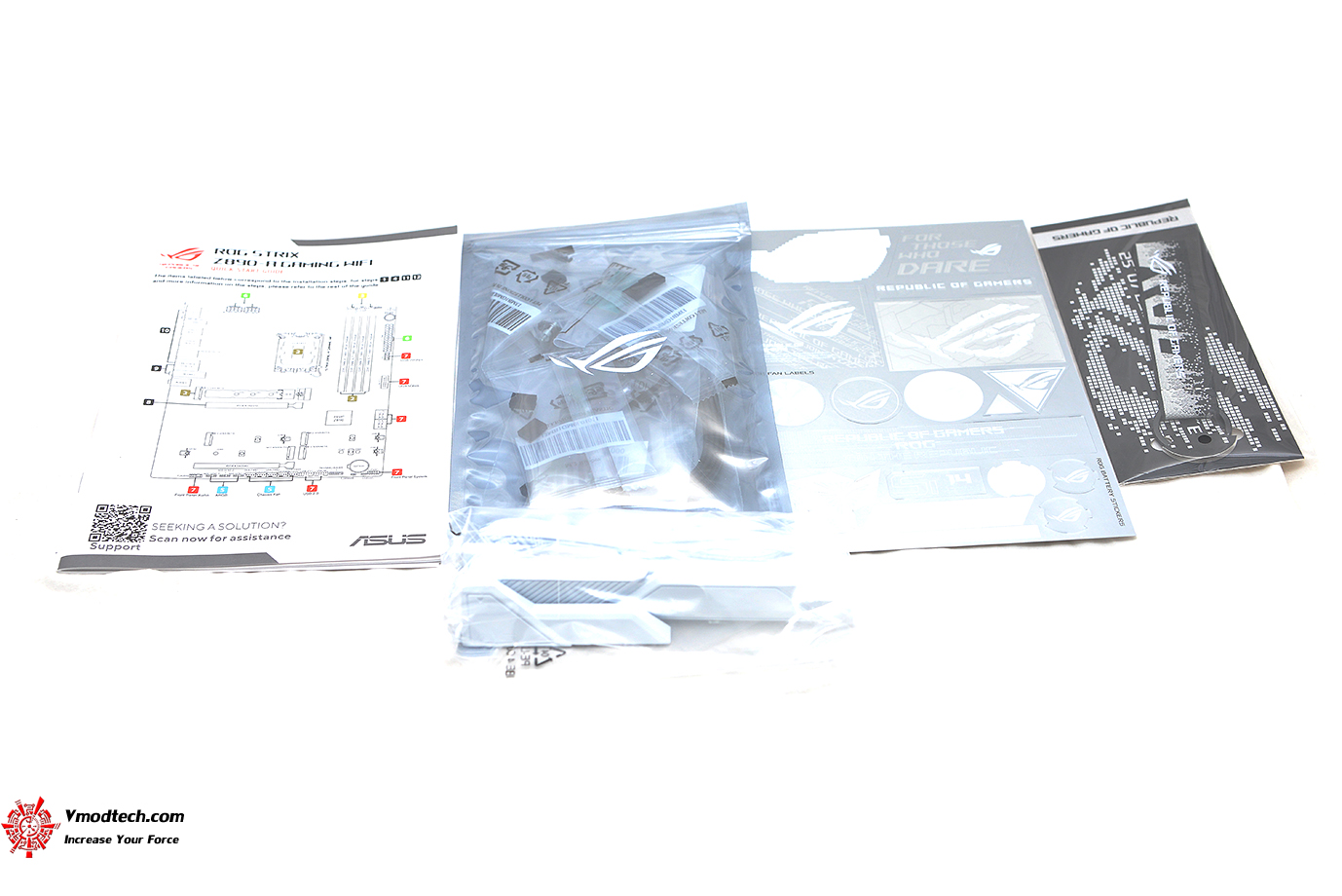 Cables 2 x SATA 6Gb/s cables Additional Cooling Kit 1 x Thermal pad for M.2 22110 Miscellaneous 1 x ASUS WiFi Q-Antenna 1 x Cable ties package 1 x M.2 Q-Latch package 1 x ROG key chain 1 x ROG Strix stickers 5 x M.2 rubbers Documentation 1 x Quick start guide