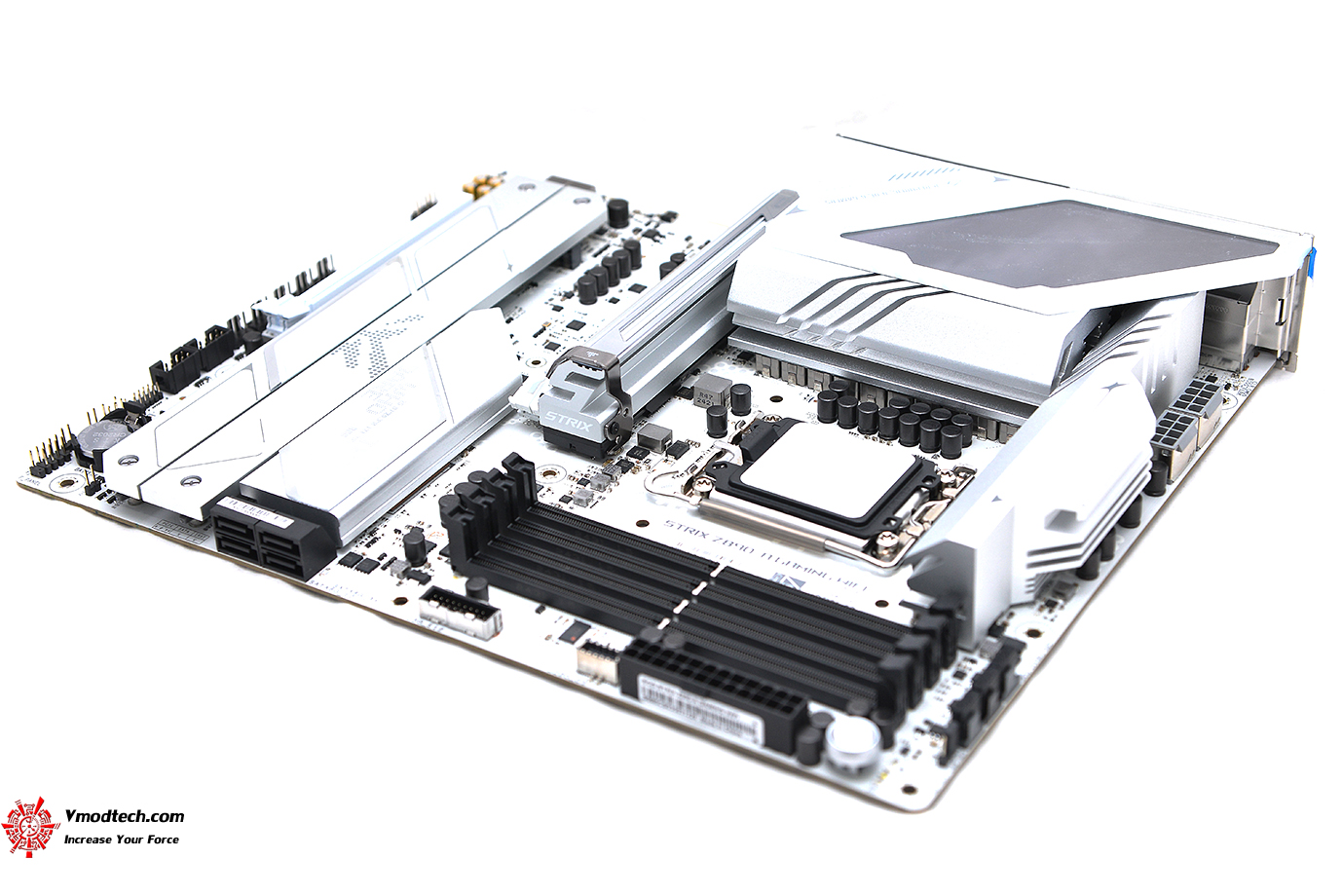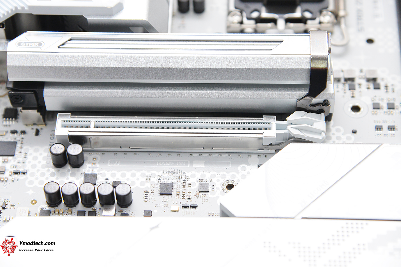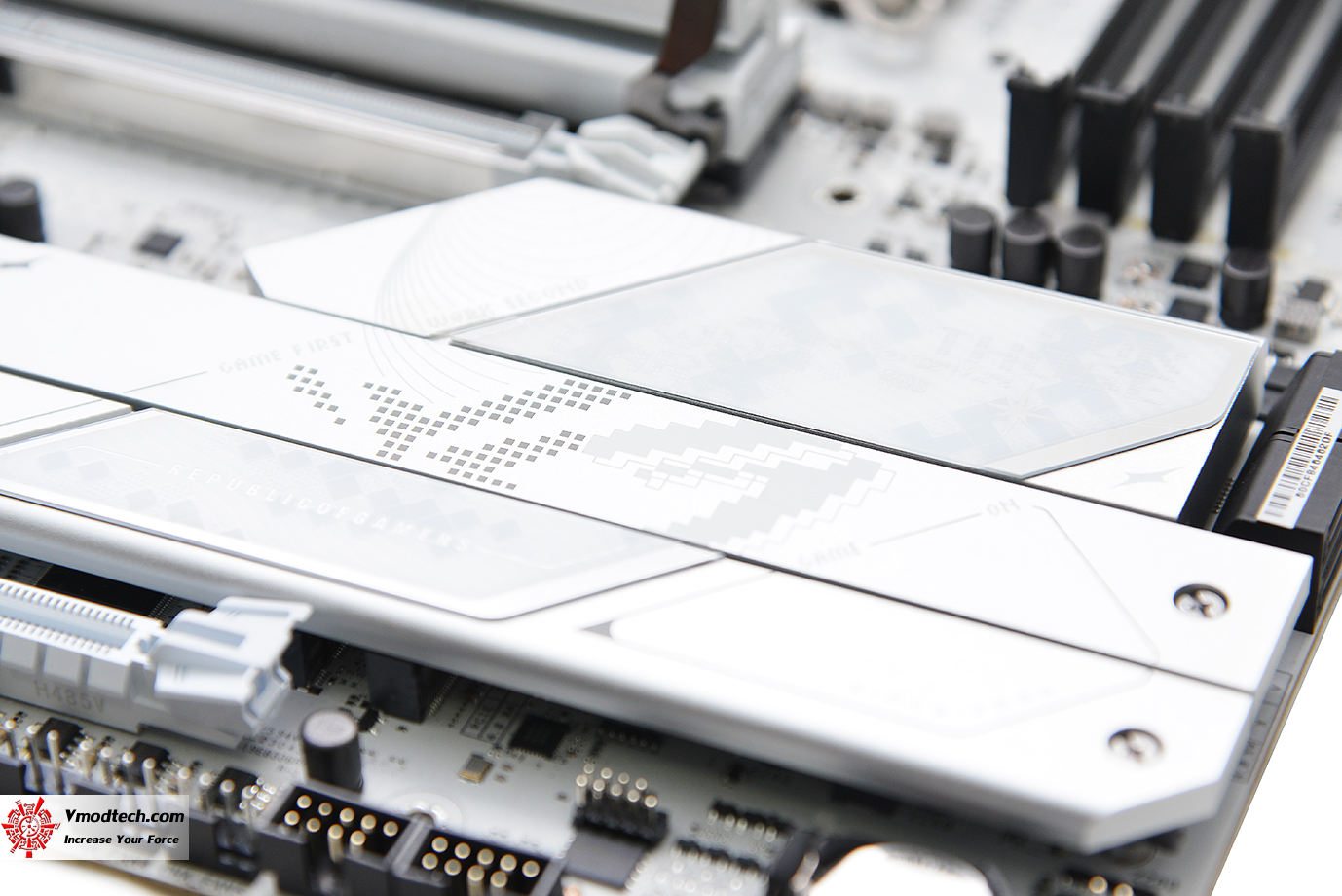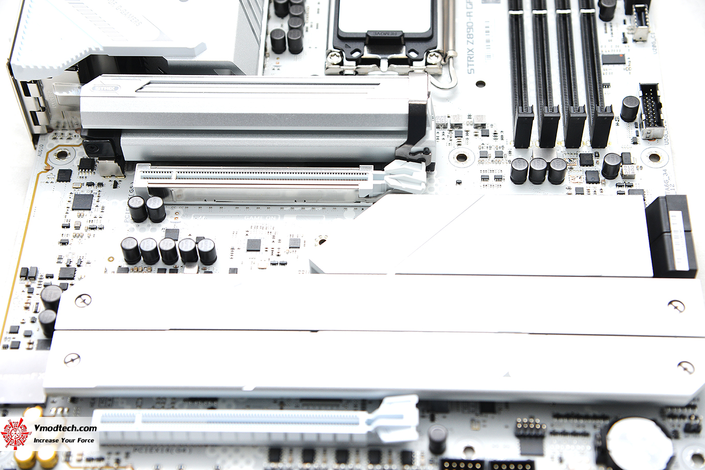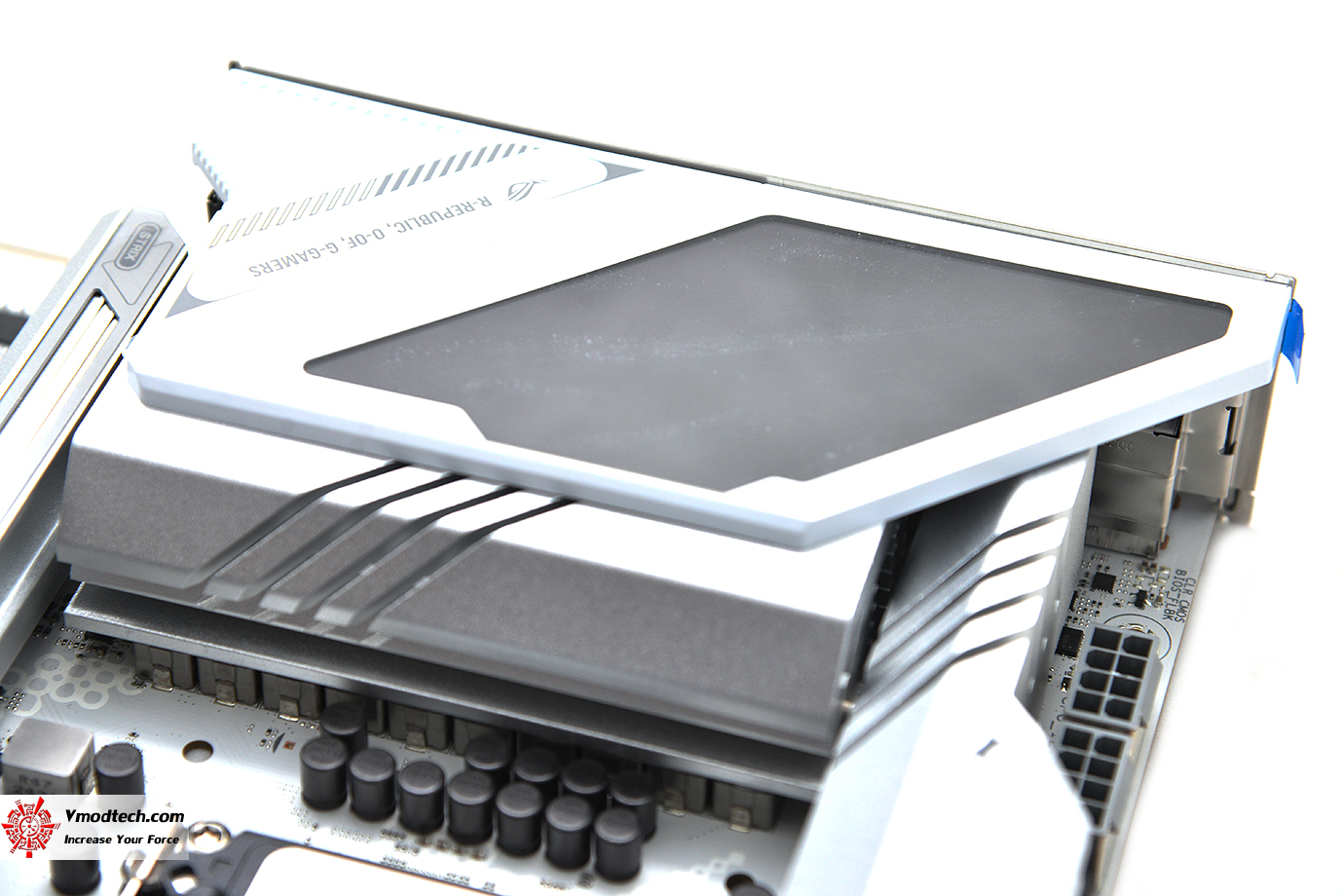 ฮีตซิงค์ชิปเซ็ตมีโลโก้ ROG STRIX พร้อมฮีตซิงค์ที่ใหญ่โตสวยงามมากๆ ครับ ชิปเซ็ต Intel® Z890 Chipset รุ่นใหม่ล่าสุด